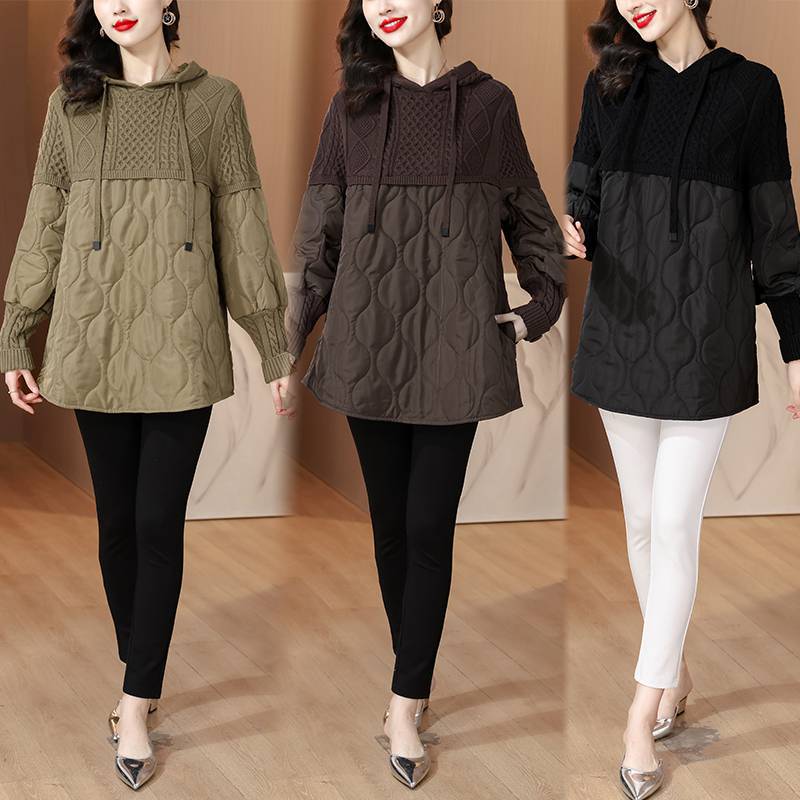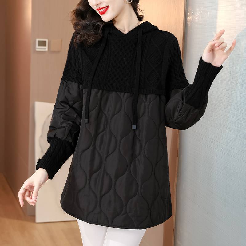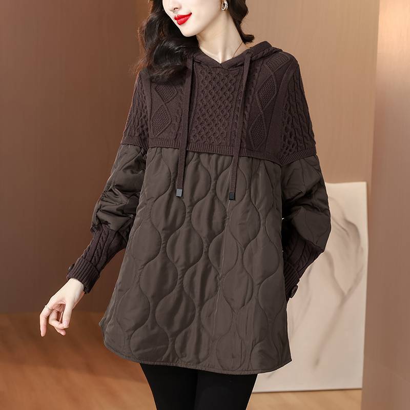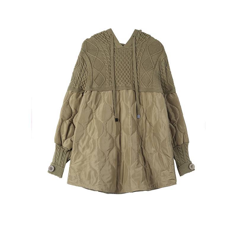 | nameOriginal | Foreign trade brand tail knitted stitching cotton-padded coat women's fashion loose casual mid-length hooded sweater quilted jacket |