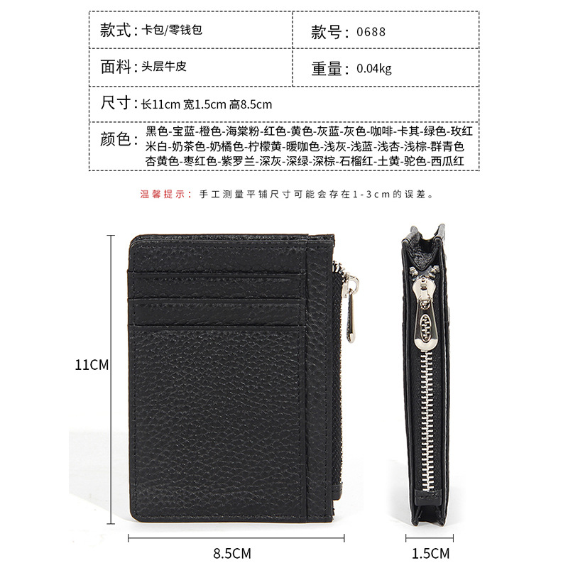 | nameOriginal | Foreign Trade Card Bag Genuine Leather Women's Cowhide Japanese Solid Color Thin Zipper Small Wallet Simple Multi-Card ID Card Case for Men |