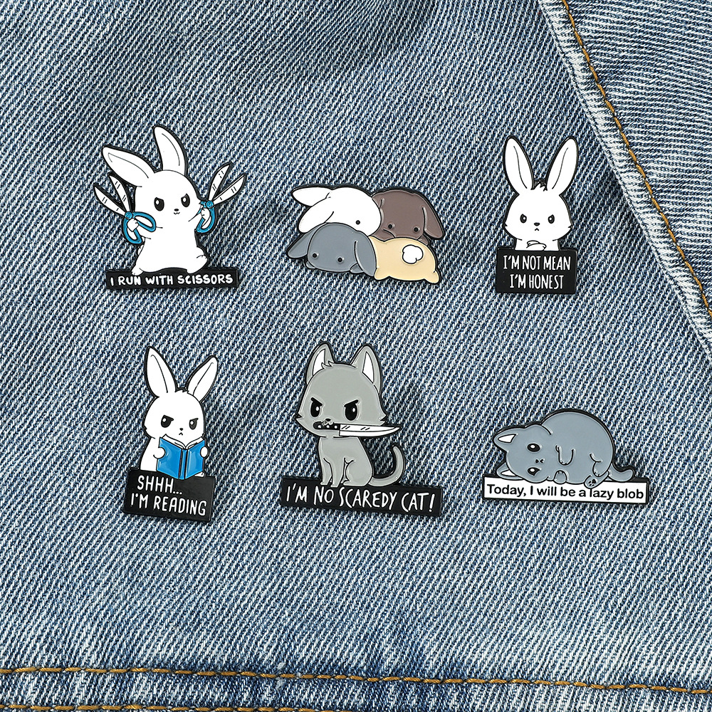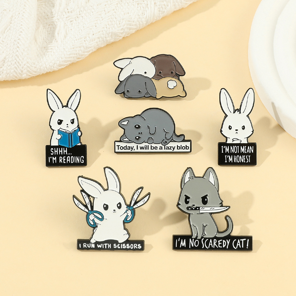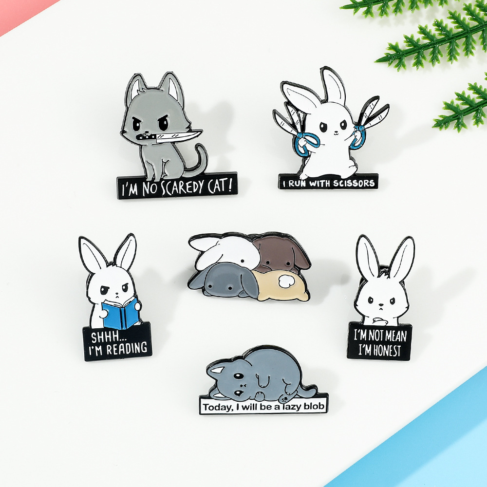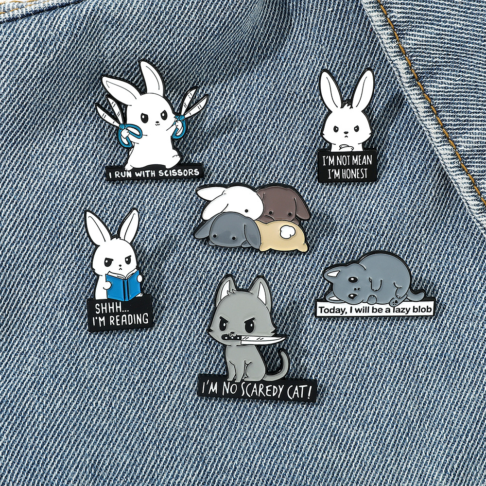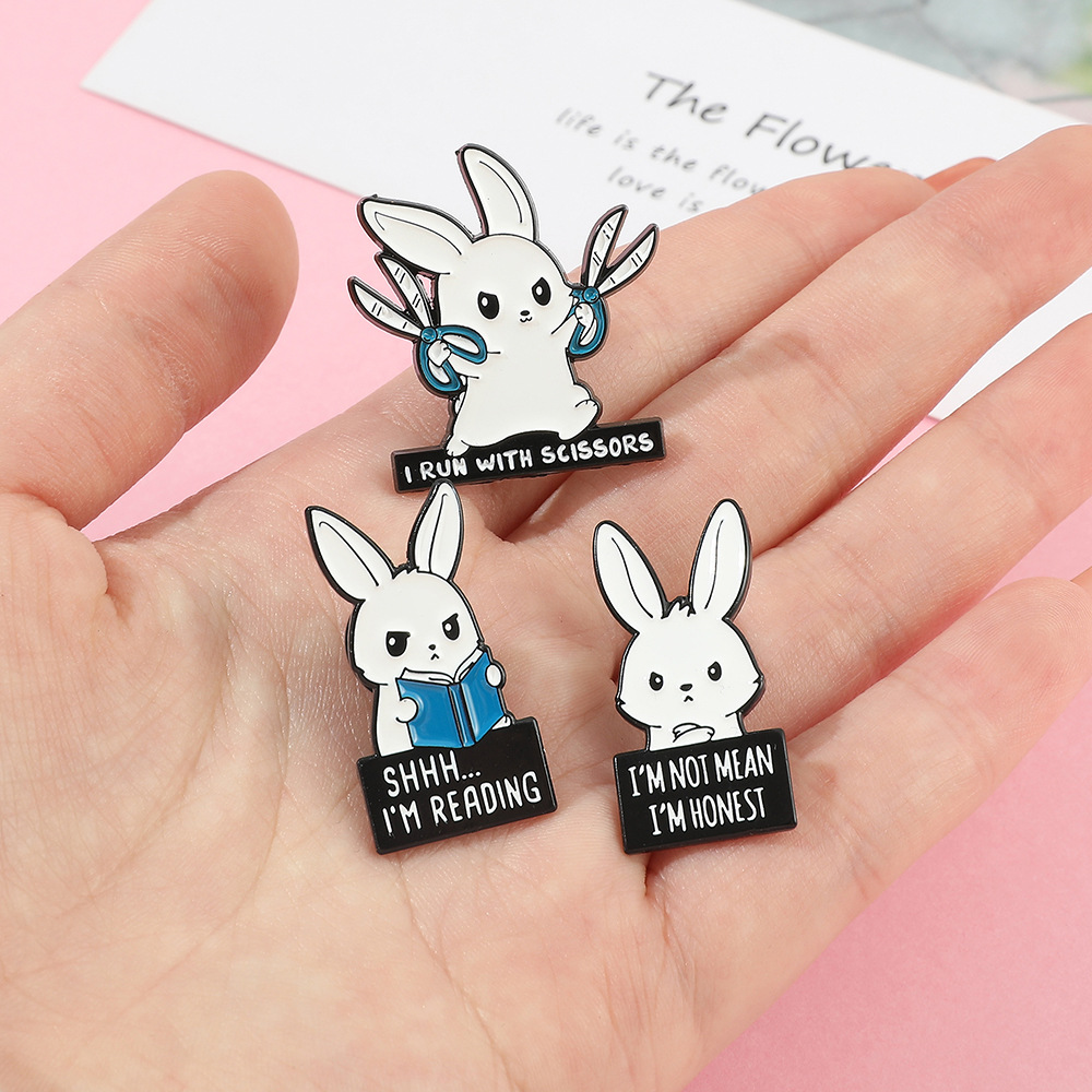 Foreign trade Cartoon creative cute small white rabbit hamster animal shape letter brooch jewelry accessories all-Match Badge