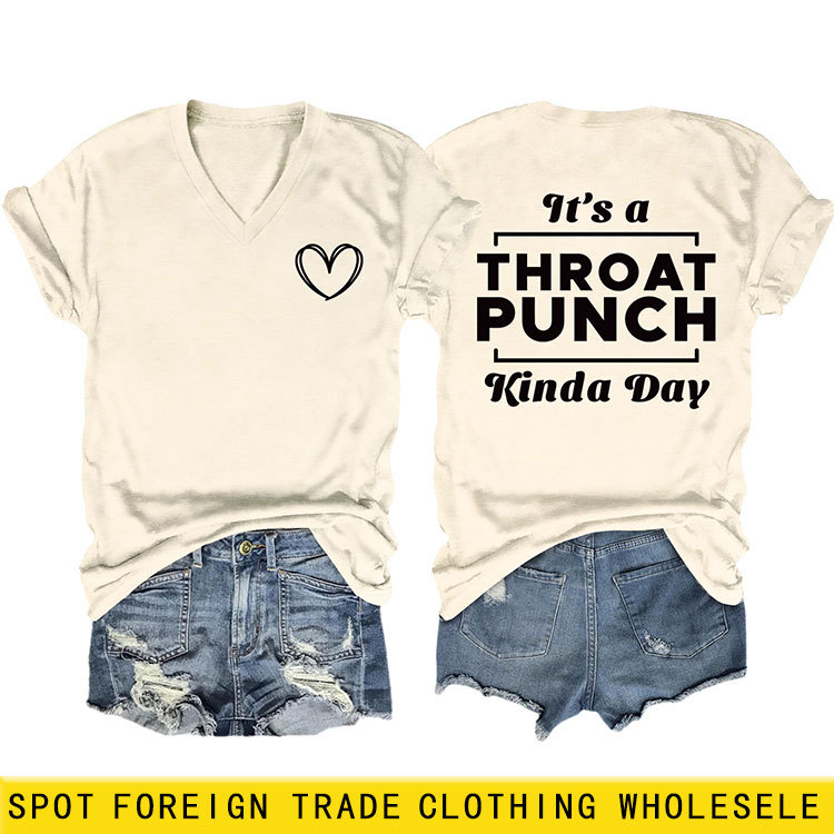| nameOriginal | Foreign trade casual double-sided printed V-neck temperament short sleeve it's a throat punch summer new women's T-shirt |