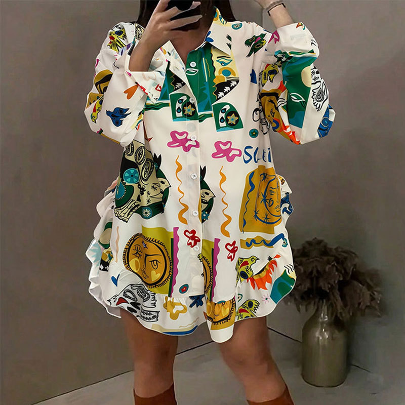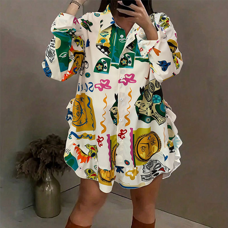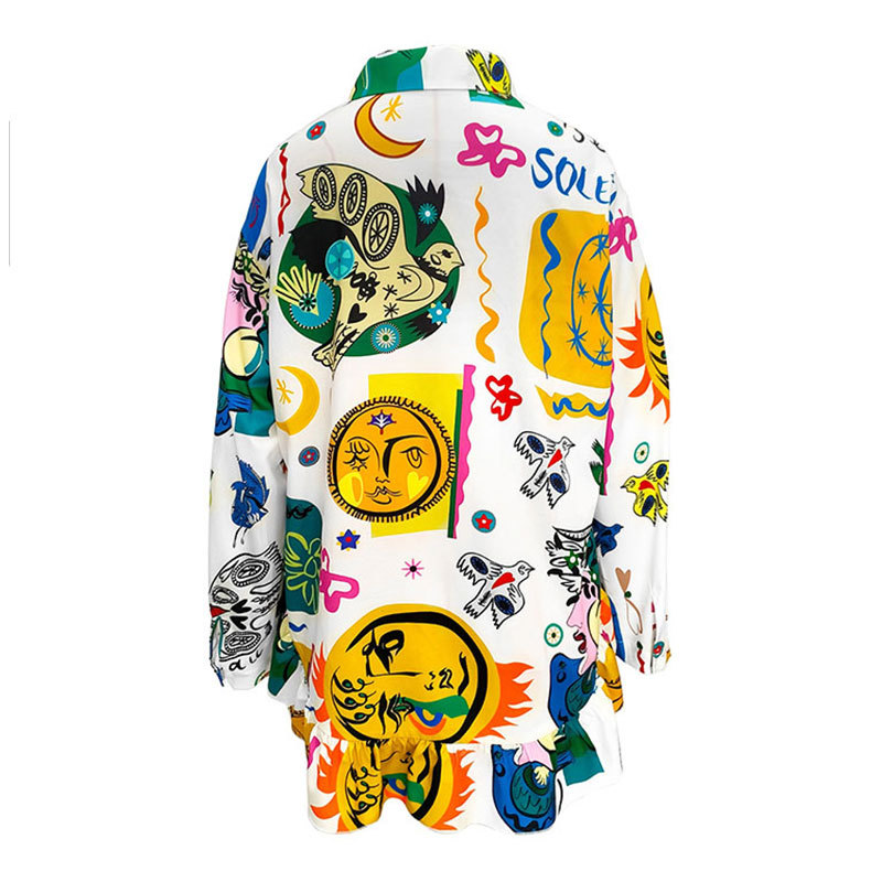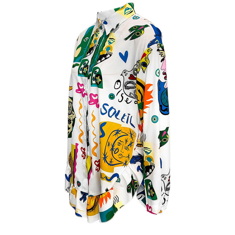 | nameOriginal | Foreign Trade Casual Woven Animal Pattern Printed Loose Ruffled Hem Long Sleeve Shirt Cross-border Women's Top |