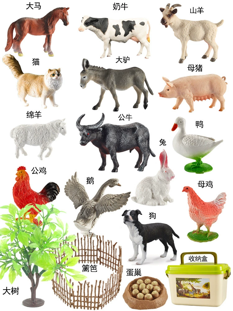 | nameOriginal | Foreign trade children's poultry animal model toys wild animals farmer ranch house fence scene cows, sheep, chickens and ducks |