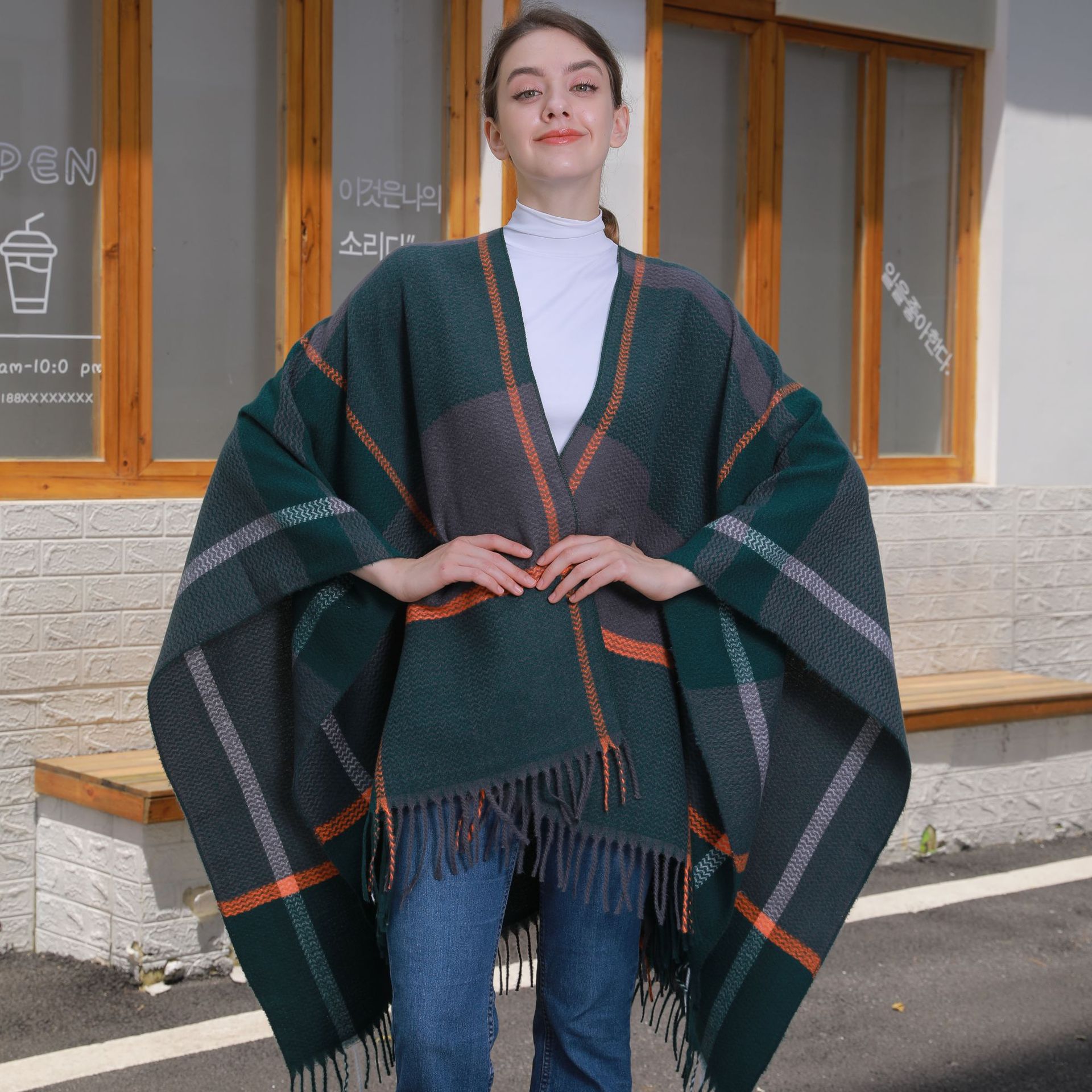 | nameOriginal | Foreign trade classic lines check shawl autumn and winter new ladies thick knitted cardigan cape Amazon wholesale |