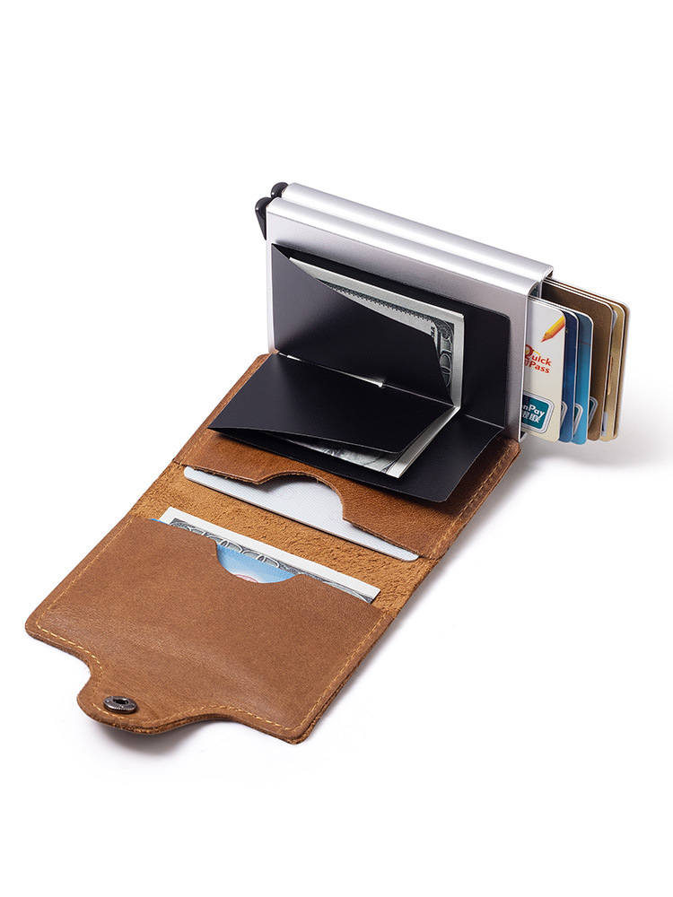 | nameOriginal | Foreign Trade Coin Purse Credit Card Holder Leather Card Bag Double Card Box Aluminum Alloy Wallet Automatic Card Box |