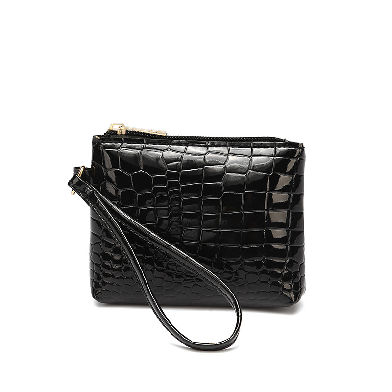 Foreign Trade Coin Purse Women’s 2021 Crocodile Pattern Mini Zipper Card Coin Wallet PU Solid Color Trendy Clutch Bag