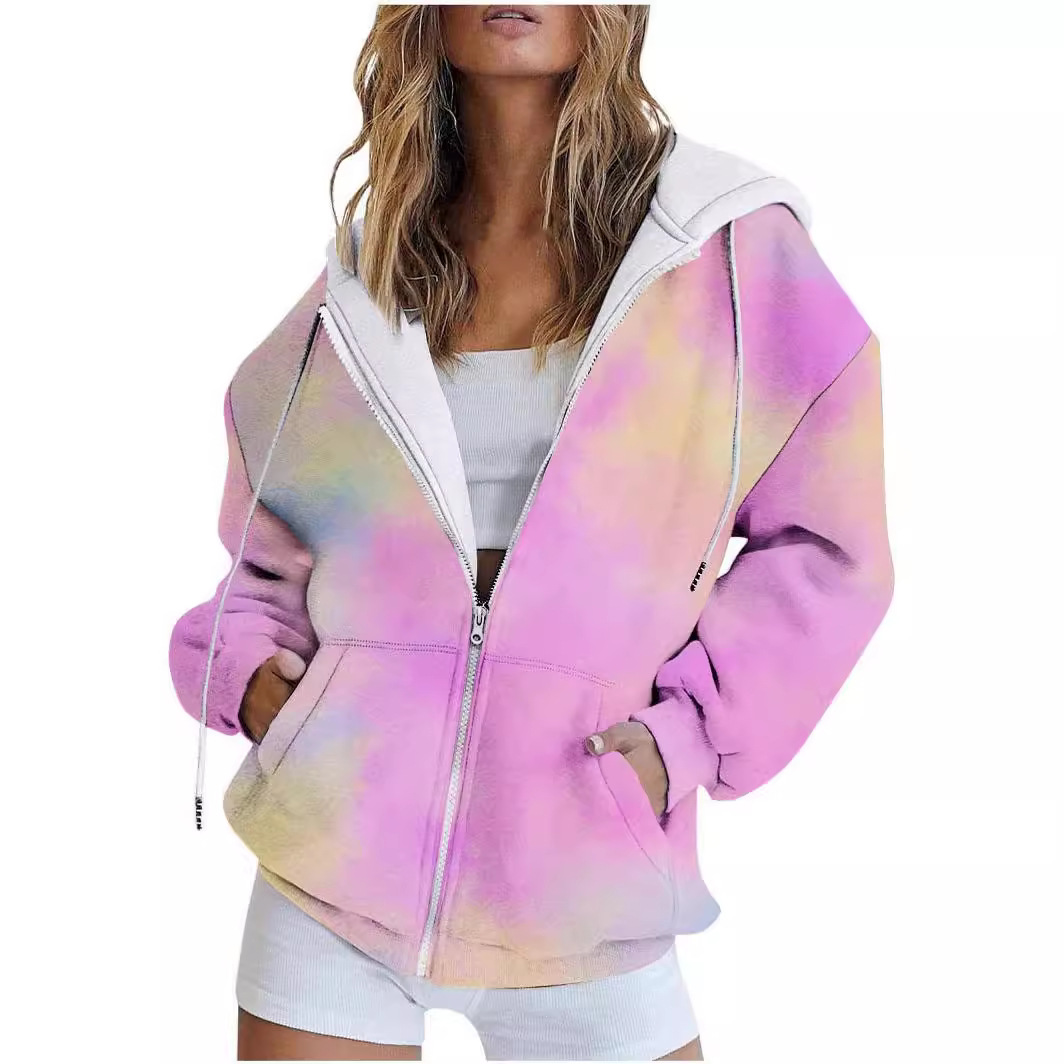 Foreign Trade Cross-border Amazon Autumn Women’s New European and American 3D Digital Printing Casual Zipper Hooded Jacket Sweatshirt