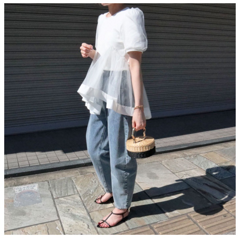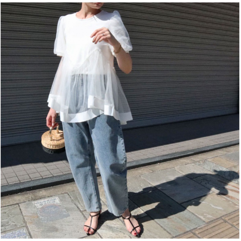 | nameOriginal | Foreign trade cross-border Japanese 2024 new mesh stitching women's cotton T-shirt fashion short sleeve top |