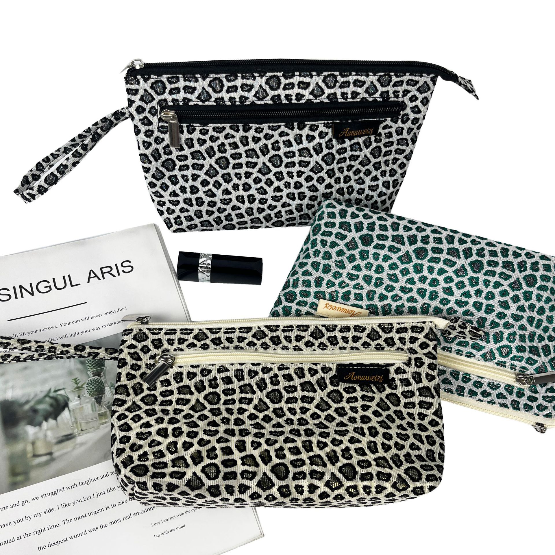 Foreign Trade Cross-border Leopard Jacquard Cosmetic Bag Women’s Fashion Hand Portable Simple Large Capacity Travel Storage Bag