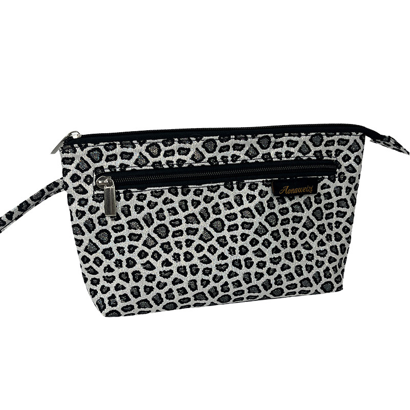 Foreign Trade Cross-border Leopard Jacquard Cosmetic Bag Women's Fashion Hand Portable Simple Large Capacity Travel Storage Bag