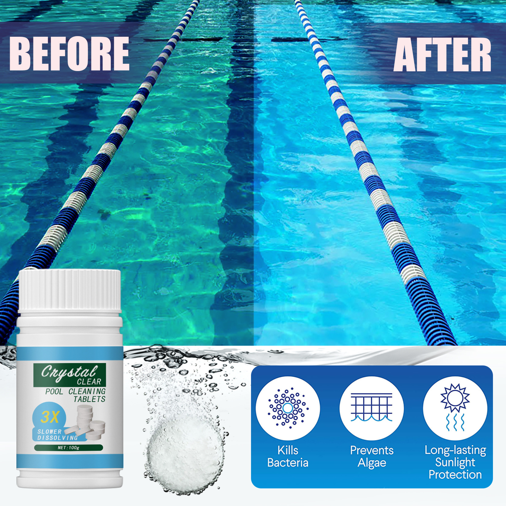 | nameOriginal | Foreign trade cross-border swimming pool effervescent cleaning tablets in addition to bacteria multi-functional cleaning agent water quality cleaning applicator set |