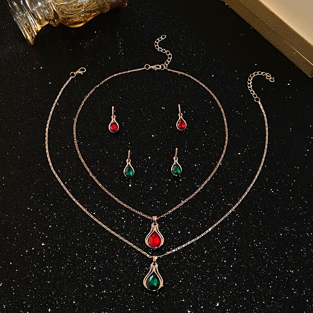 | nameOriginal | Foreign trade cross-border wish fashion women's colorful diamond-encrusted drop necklace earrings set jewelry wholesale |