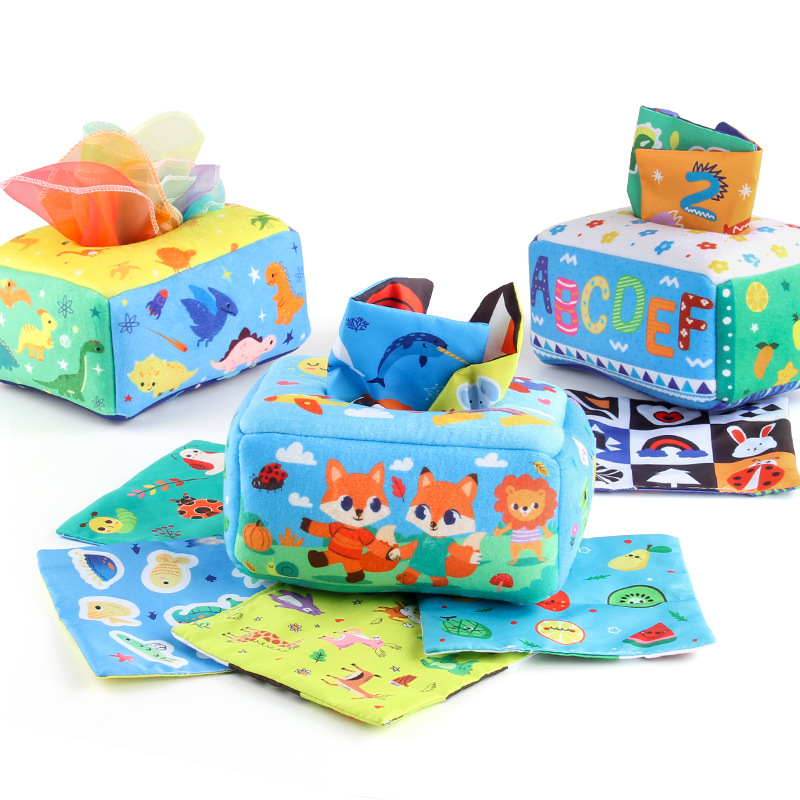 Foreign trade early education cloth book hand tear-free tissue box with ringing paper tissue exercise soothing early education baby cloth book