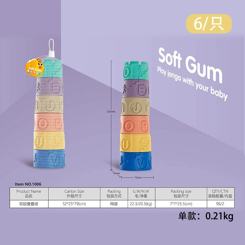 | nameOriginal | Foreign trade entrance chewing soft rubber building blocks for infants and young children bathing and grasping soothing toys Jenga stacking towers |