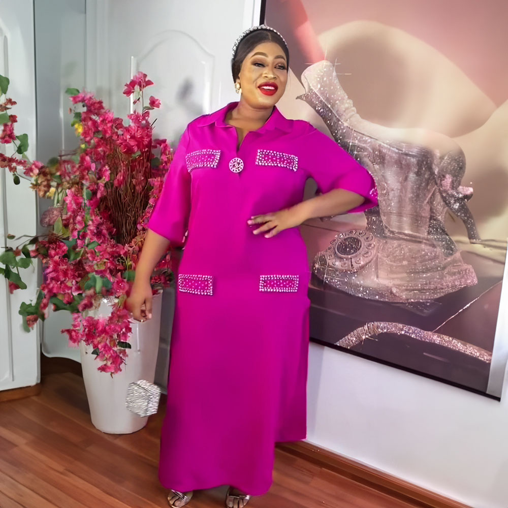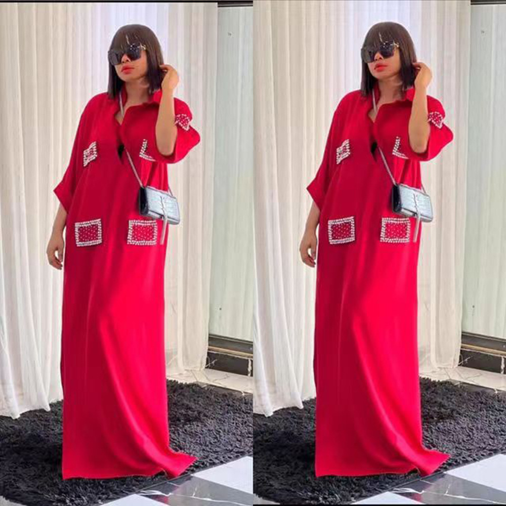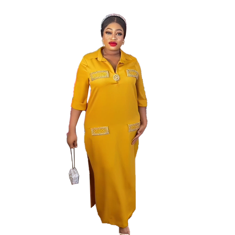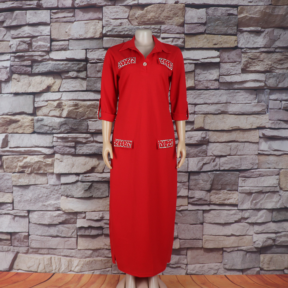 | nameOriginal | Foreign Trade Europe, America and Africa Women's Dress Shirt Collar with Brooch Hot Drilling Stretch Fabric Casual Dress |