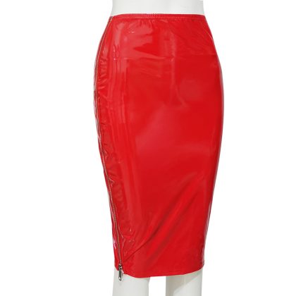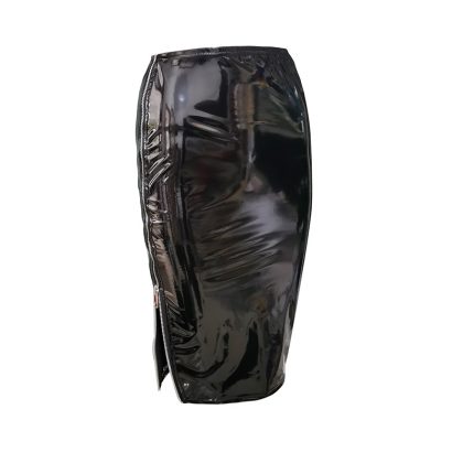 Foreign Trade Europe and the United States bright mirror PU leather high waist skirt tight hip zipper split skirt stretch skirt slim fit