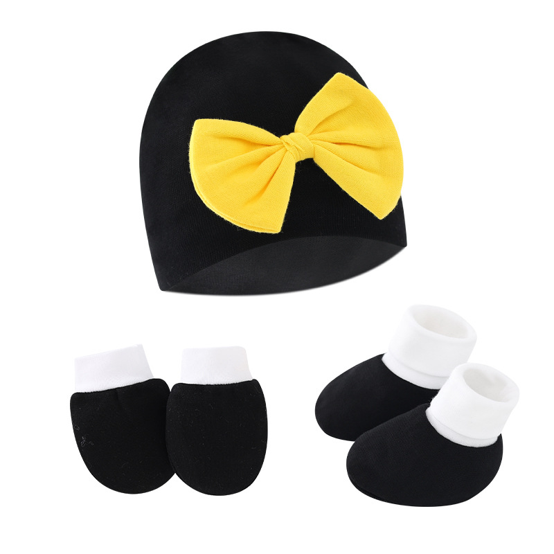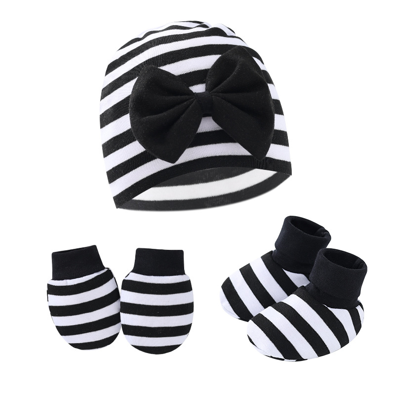 | nameOriginal | Foreign Trade European and American Newborn Hat Anti-scratch Gloves Foot Set Baby Hat India Bow Baby Hat Three-piece Set |