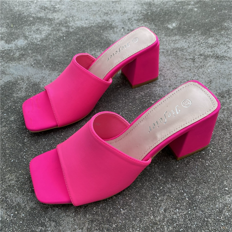 Foreign trade European and American open toe summer square toe thick heel sandals