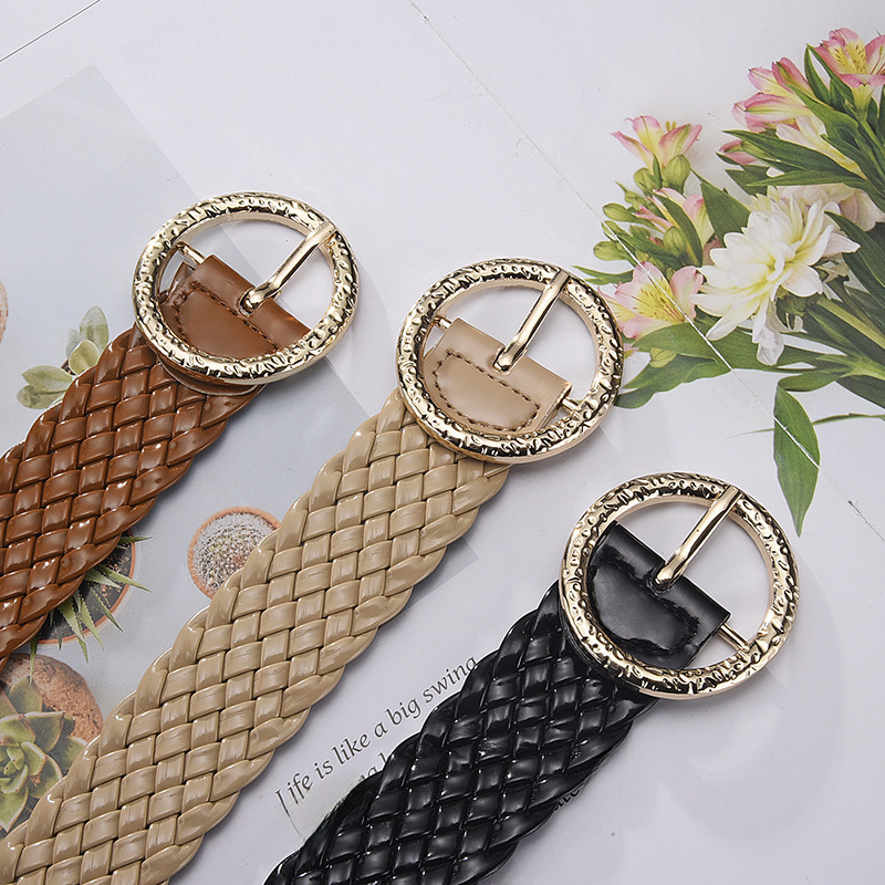 | nameOriginal | Foreign Trade Explosions Fashion Women's Woven Belt Women's High-end All-match Round Buckle Patent Leather Decorative Dress Wide Belt |