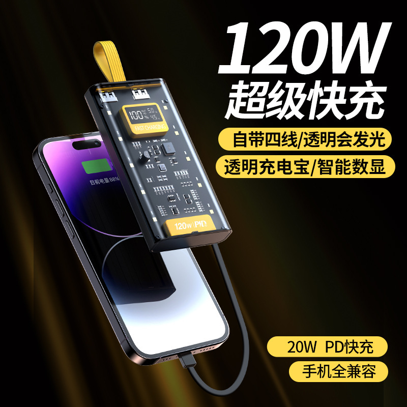 | nameOriginal | Foreign trade explosions super fast charge transparent 20000 mA charging treasure punk wind comes with portable mobile power supply |