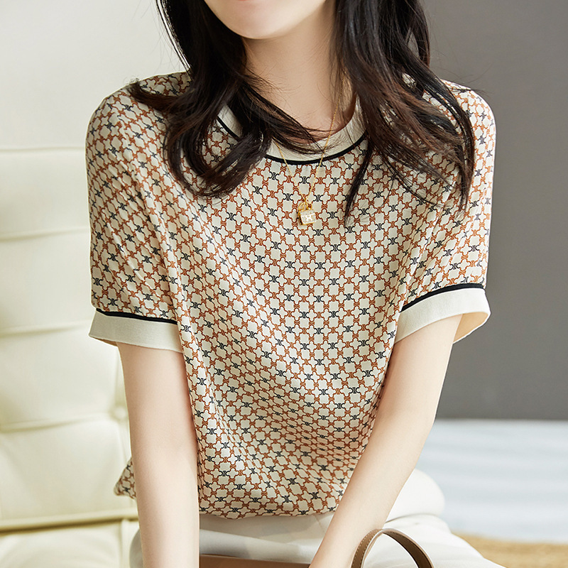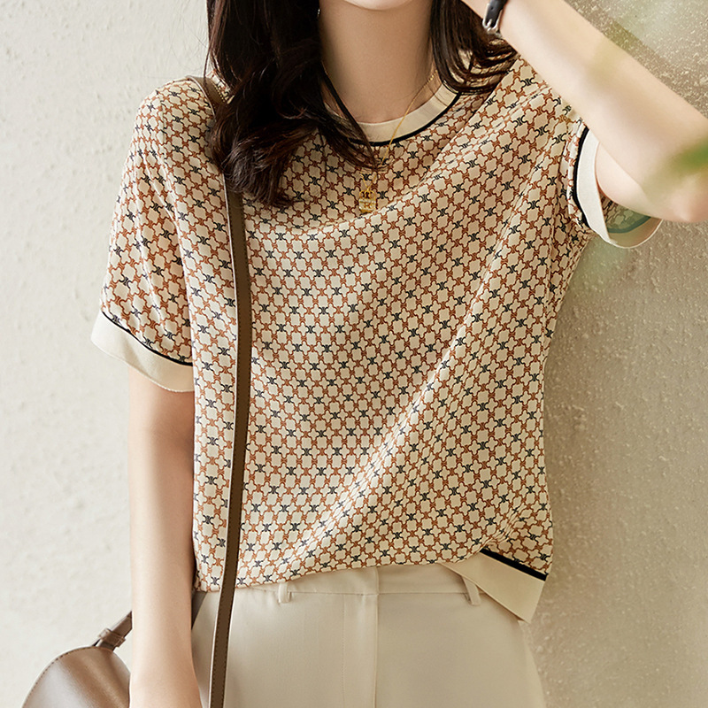 | nameOriginal | Foreign Trade Export Italy Tail List Original List Withdrawn from Cabinet Remaining List Tail Goods Slimming Printed Mulberry Silk Short-sleeved Women's Summer T-shirt |