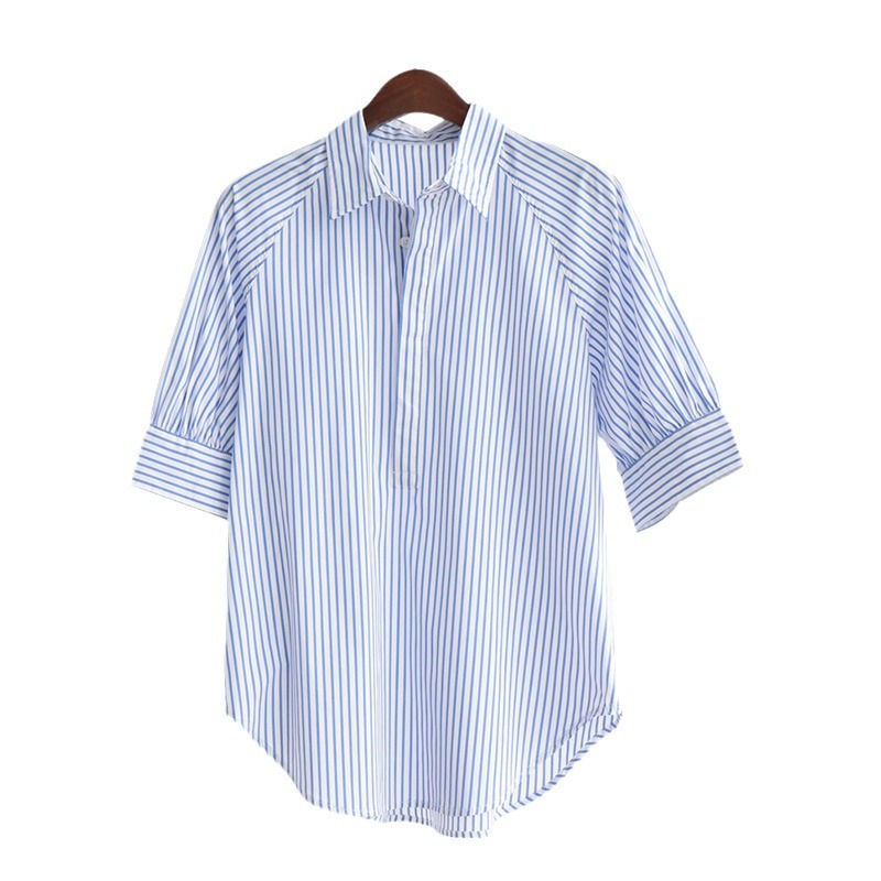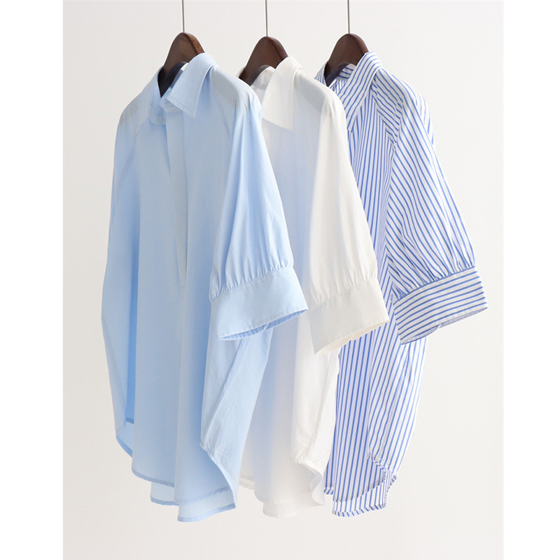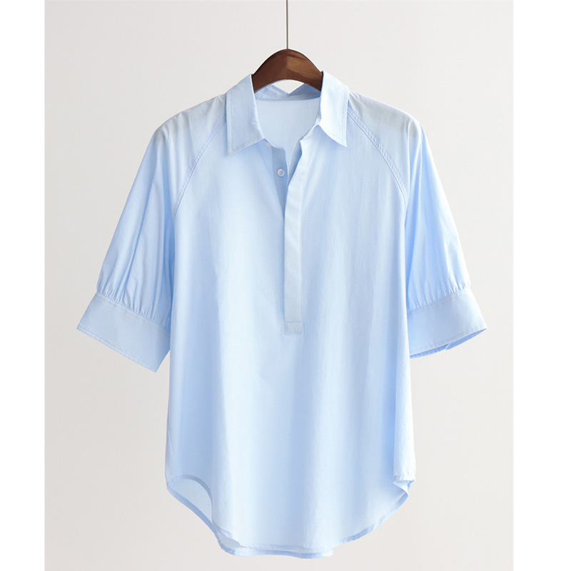 Foreign Trade Export Single 100 Import Cotton Simple Elegant Slim Sleeve Casual Shirt Summer Loose Top T-shirt for Women
