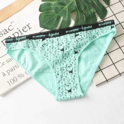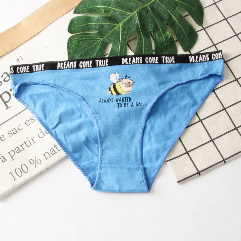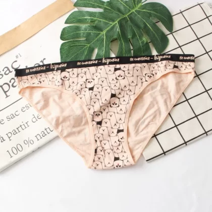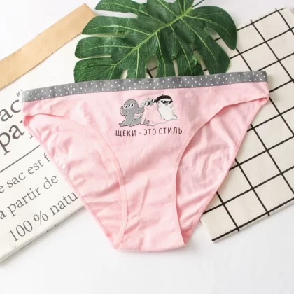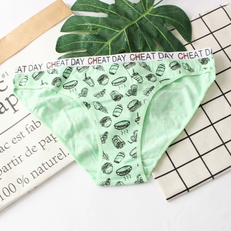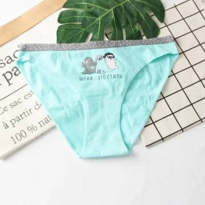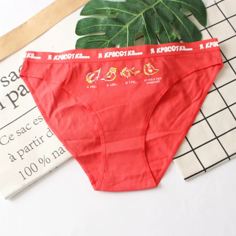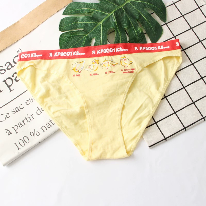 Foreign trade export to Russia, single-digit women's low-waist underwear for girls, cute cartoon print, pure cotton, large size, high slit