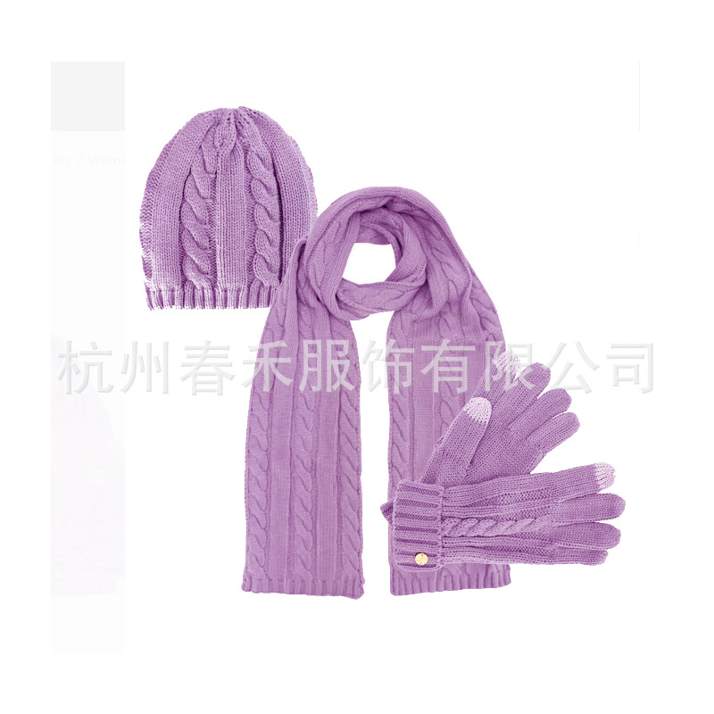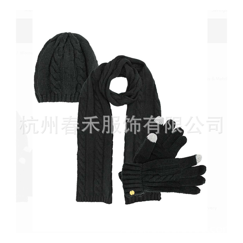 Foreign trade factory knitted three-piece two-piece set suit scarf hat gloves ball hat touch screen gloves