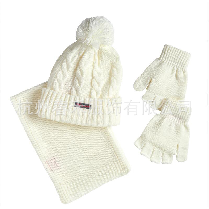 | nameOriginal | Foreign trade factory White autumn and winter knitted scarf hat gloves three-piece set 2-piece set suit LOGO |
