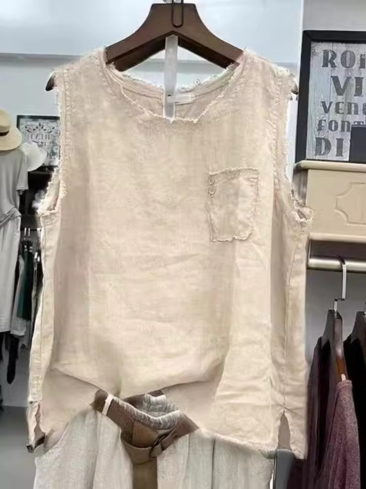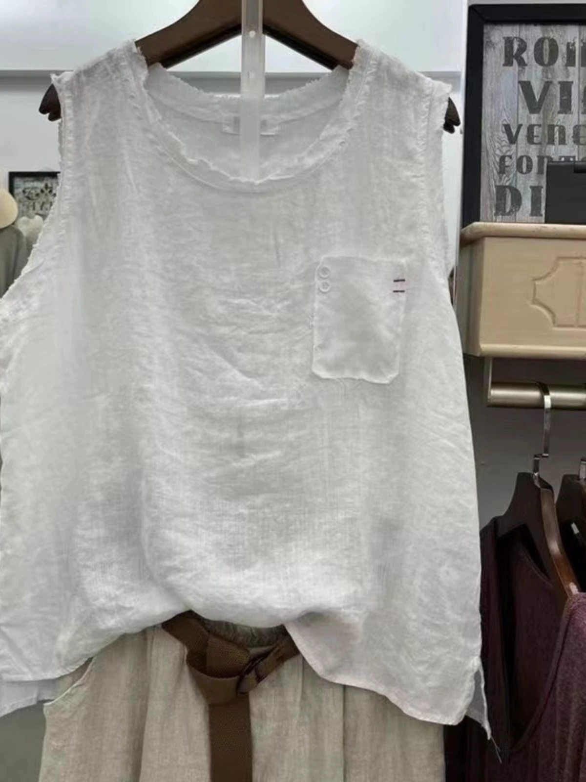 | nameOriginal | Foreign trade first-line brand fat mm retro raw edge linen T-shirt women's summer literary cotton and linen loose vest sleeveless top |
