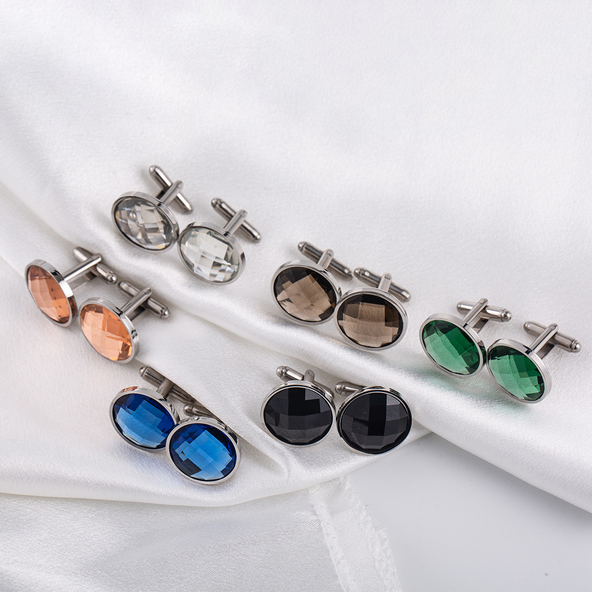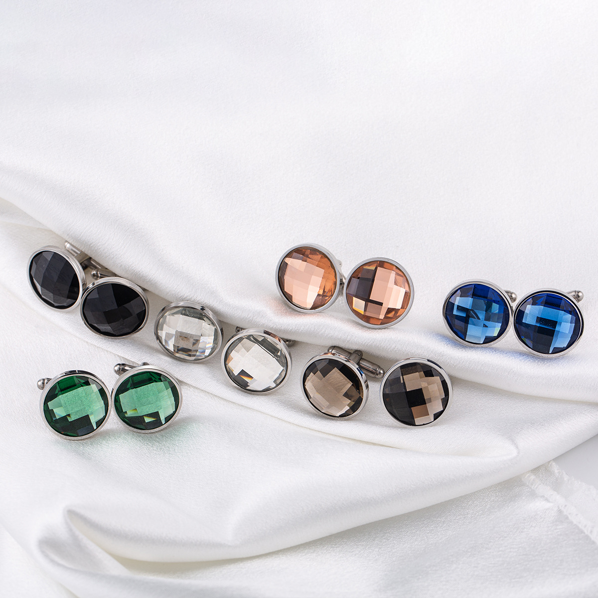 | nameOriginal | Foreign Trade French Entry Luxury Fashion 2cm Stainless Steel Multicolor Diamond Round Cufflinks Men's Banquet Business Accessories |