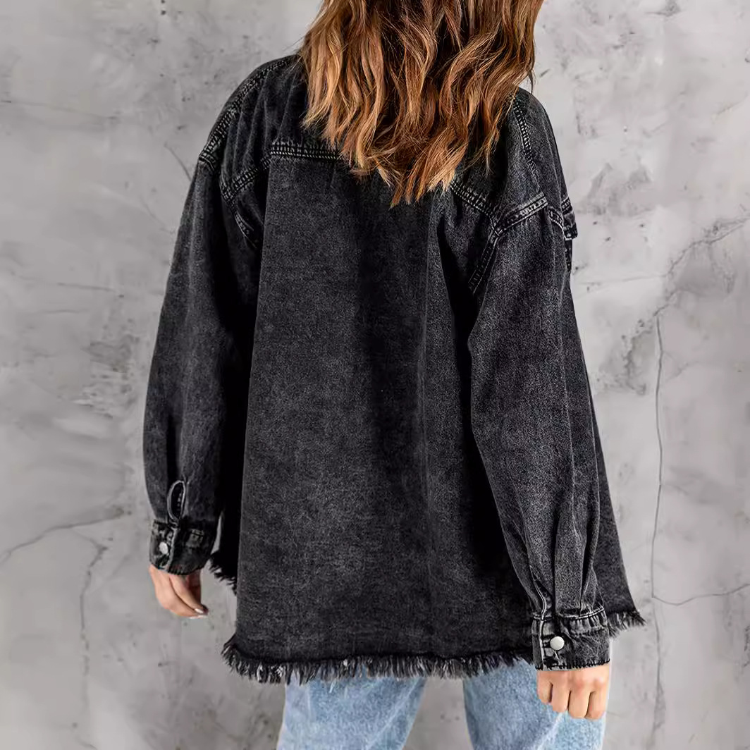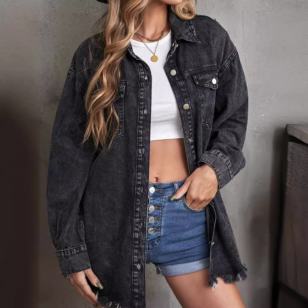 | nameOriginal | Foreign trade hot sale black denim coat for women 2023 new European and American frayed Street hipster jacket washed Denim coat |