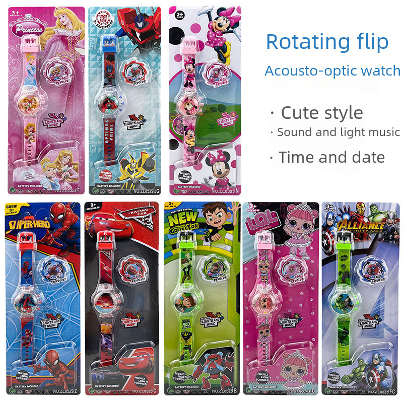 | nameOriginal | Foreign trade hot sale rotating flip light music watch cover rotatable decompression exquisite cartoon pattern Electronic |