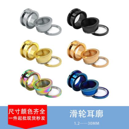 Foreign trade hot selling stainless steel pulley auricle vacuum electroplating ear expander punk style body piercing ear studs ear jewelry