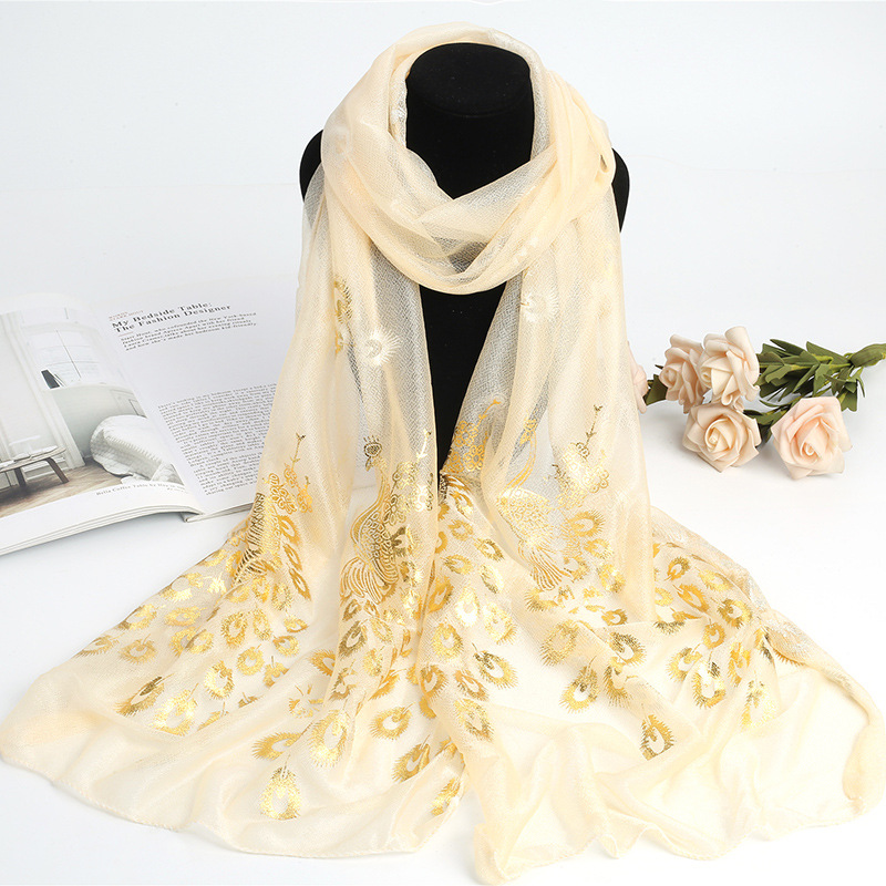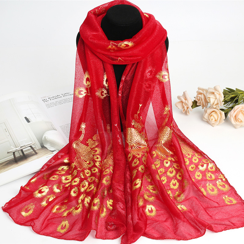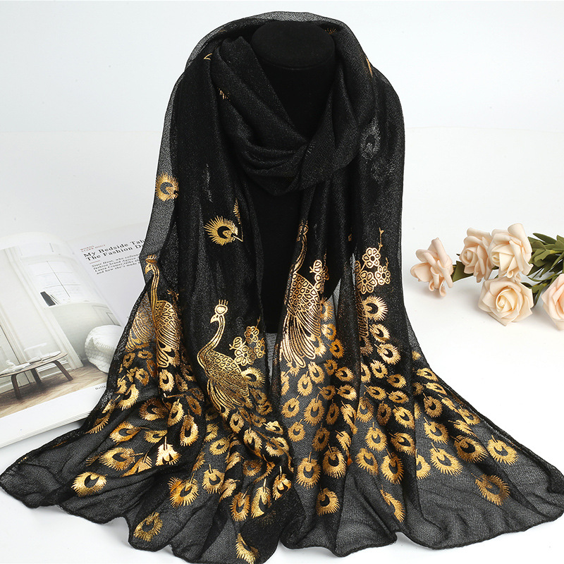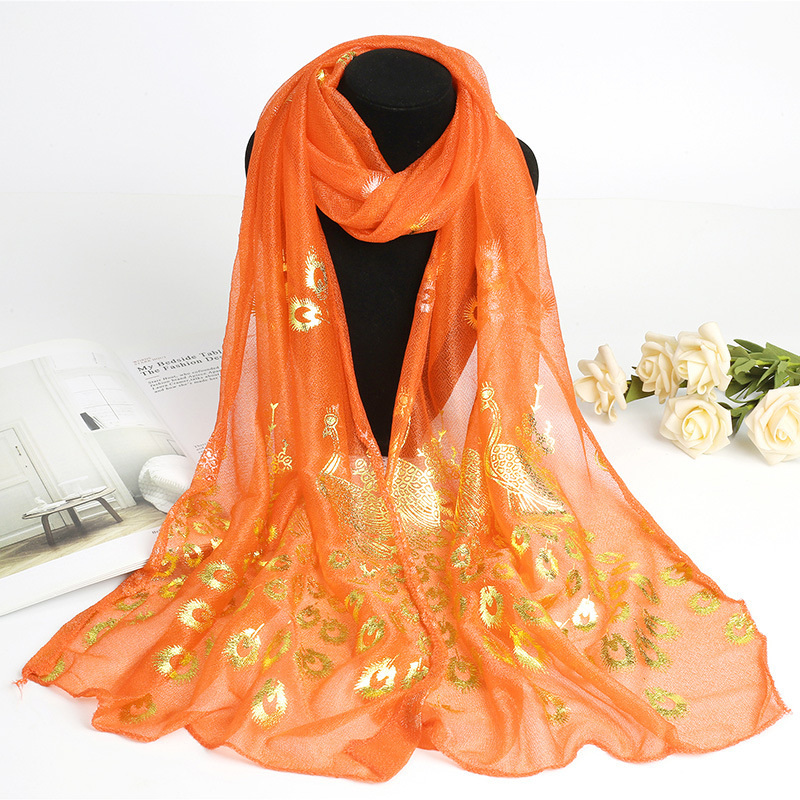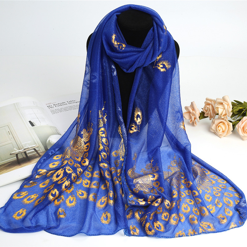 Foreign trade hot stamping Peacock scarf women's long stretch beauty yarn scarf solid color all-match decorative scarf shawl