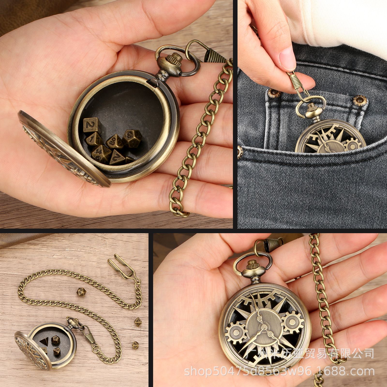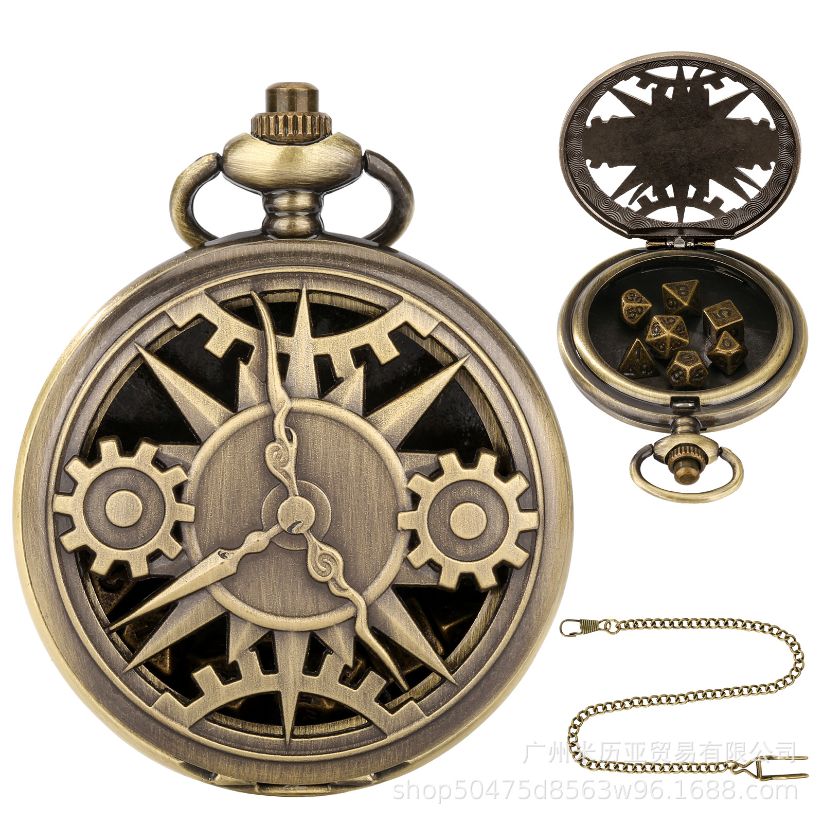 Foreign trade in stock hot sale New Qinggu hollow gear pocket watch case thick waist chain-Qinggu dice one-piece delivery