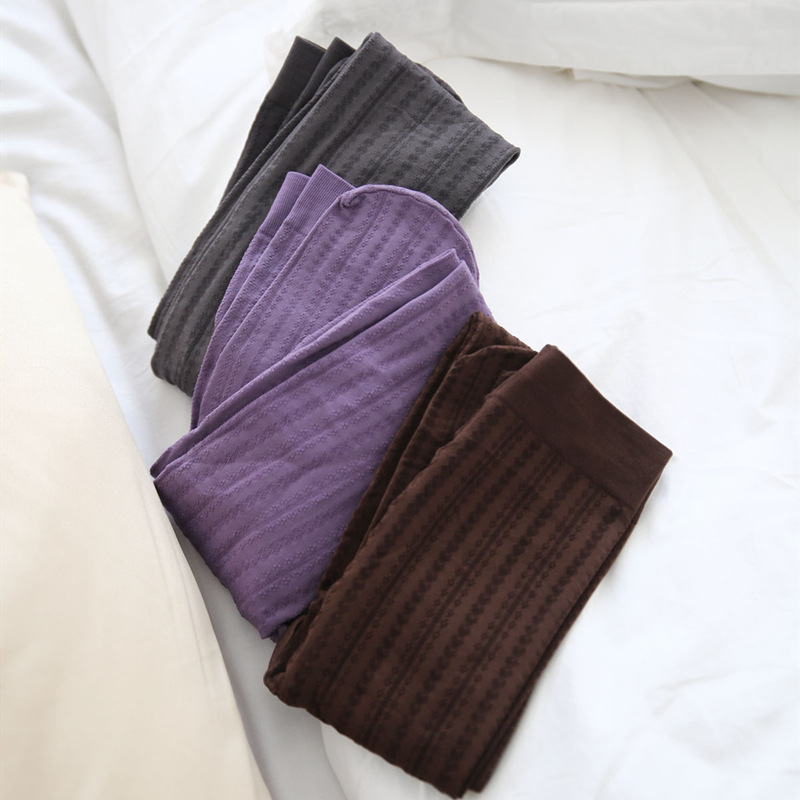Foreign Trade Japanese Style Spring and Summer Socks Vertical Strip Retro Heart-shaped Three-dimensional Jacquard High Elastic Pantyhose Women’s Base Stockings
