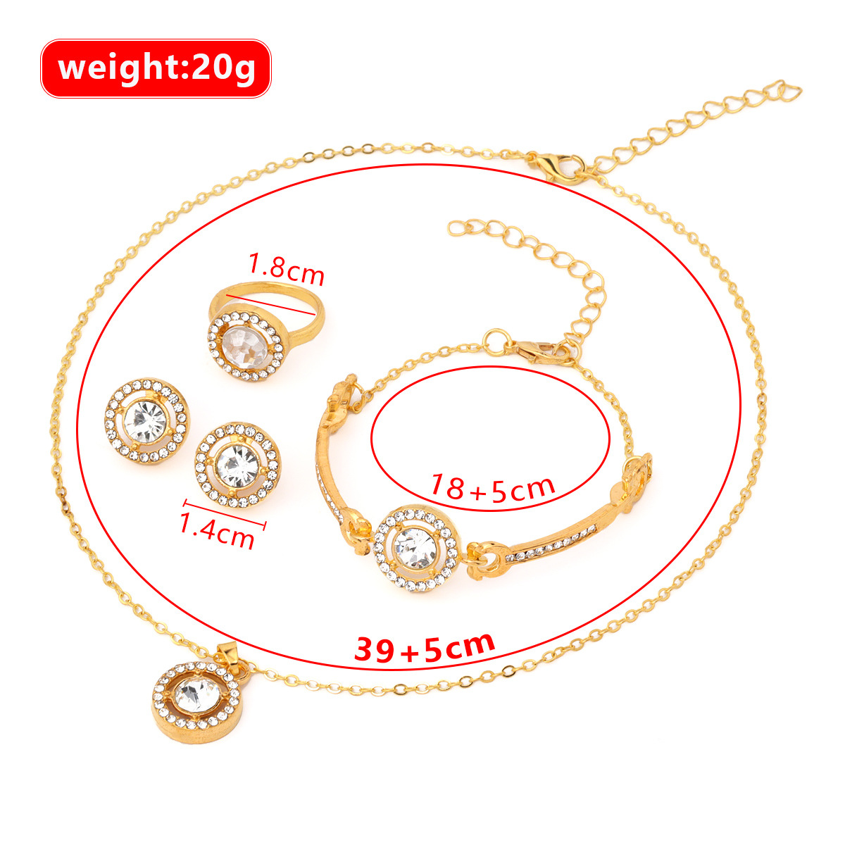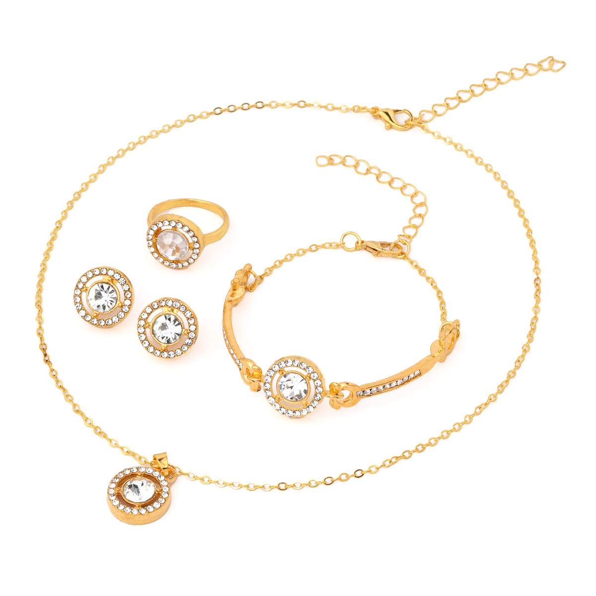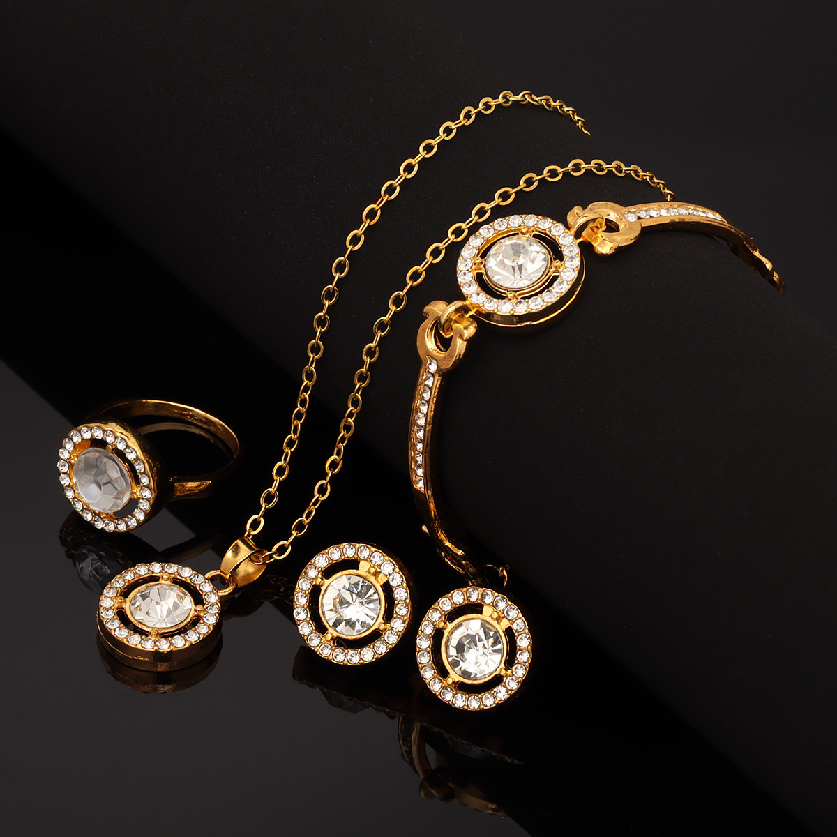 | nameOriginal | Foreign trade jewelry suit women's fashion four-piece set creative temperament personality diamond bracelet necklace earrings ring wholesale |