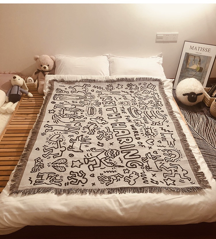 | nameOriginal | Foreign trade Keith Haring black and white graffiti camping bed blanket |