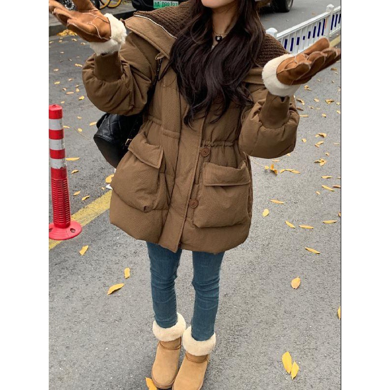 | nameOriginal | Foreign trade lamb wool lapel down cotton-padded coat Women's Mid-length 2024 Winter new Korean style thickened waist-tight coat |