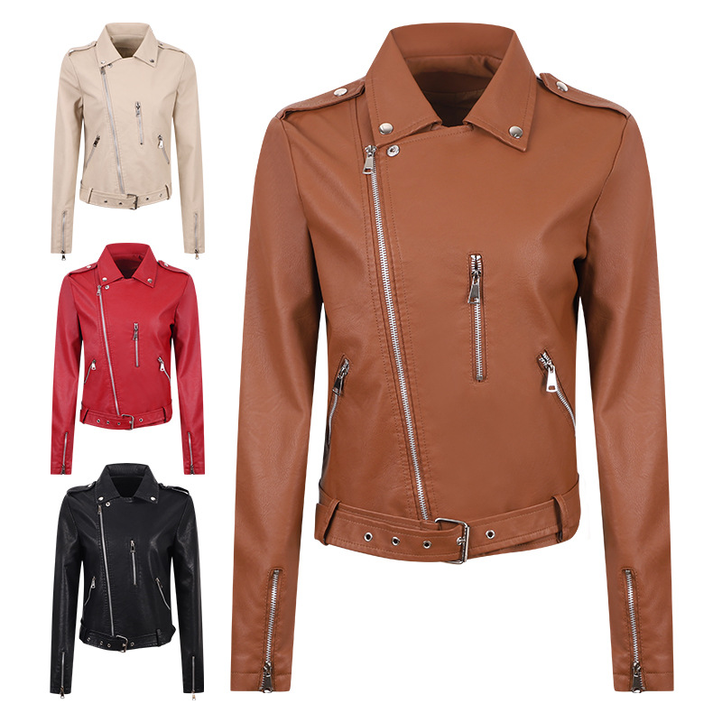 | nameOriginal | Foreign Trade Leather Jacket Women's Coat Short Top Spring and Autumn PU Trendy Cool Slant Zipper Slim Slim-fit Washed Motorcycle Leather Jacket |