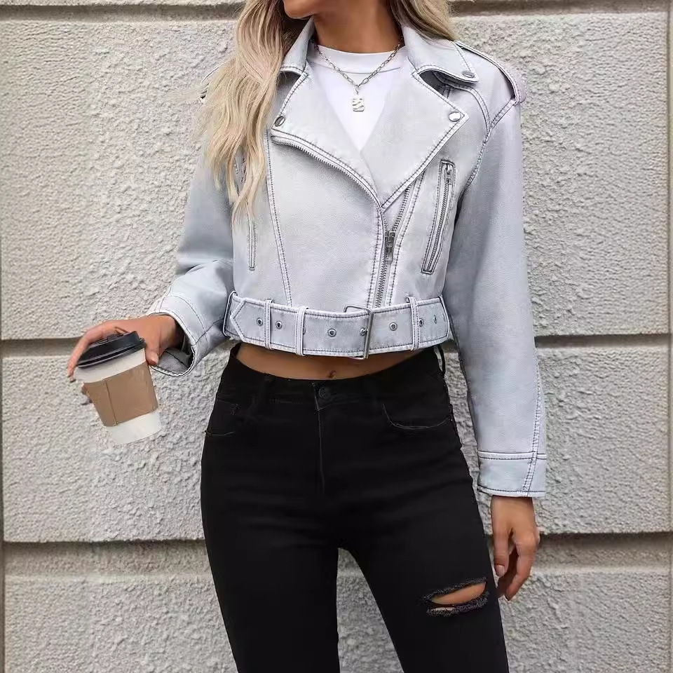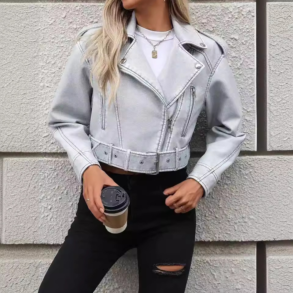 | nameOriginal | Foreign trade leather women's autumn 2023 new lapel motorcycle jacket pu leather jacket European and American style imitation leather jacket tide |