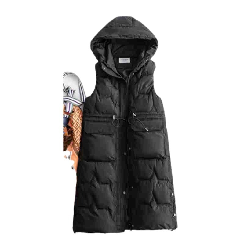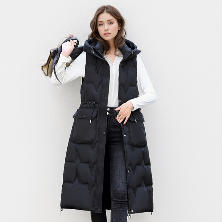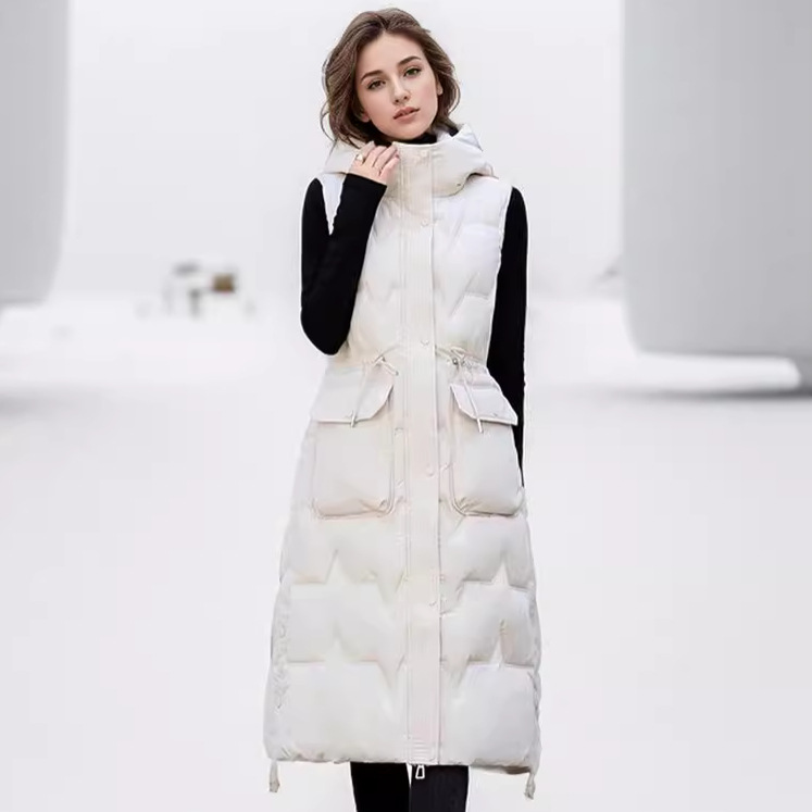 Foreign trade long knee-length cotton vest thickened solid color plus size vest hooded autumn and winter sleeveless coat thickened vest women