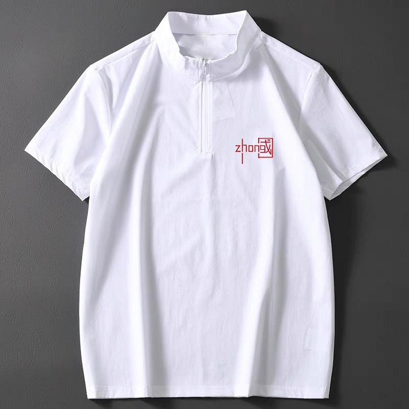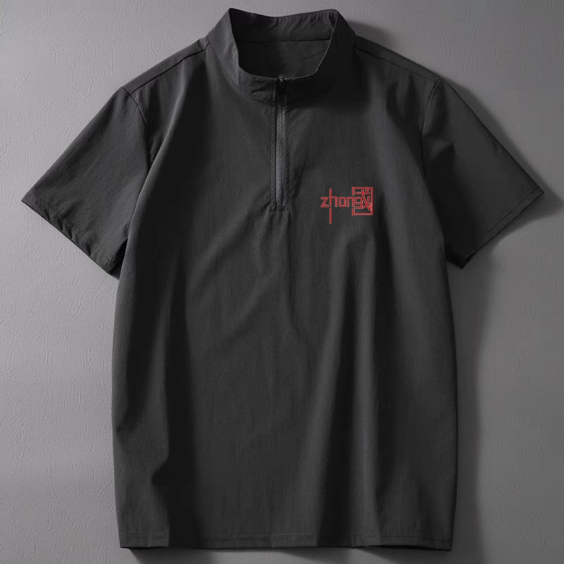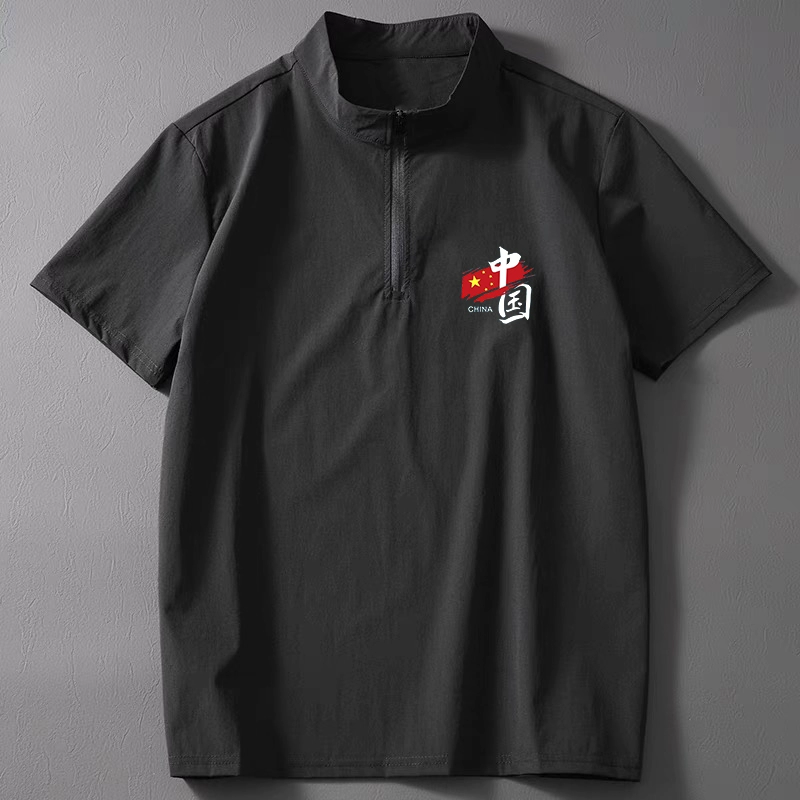 | nameOriginal | Foreign trade men's high elastic half-zip stand collar short-sleeved T-shirt |