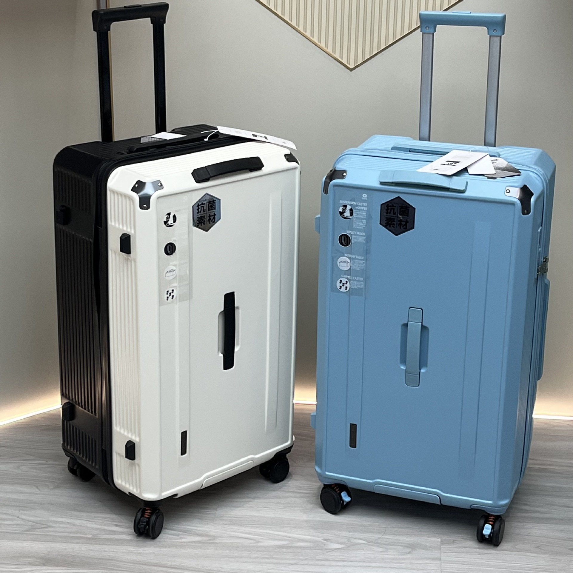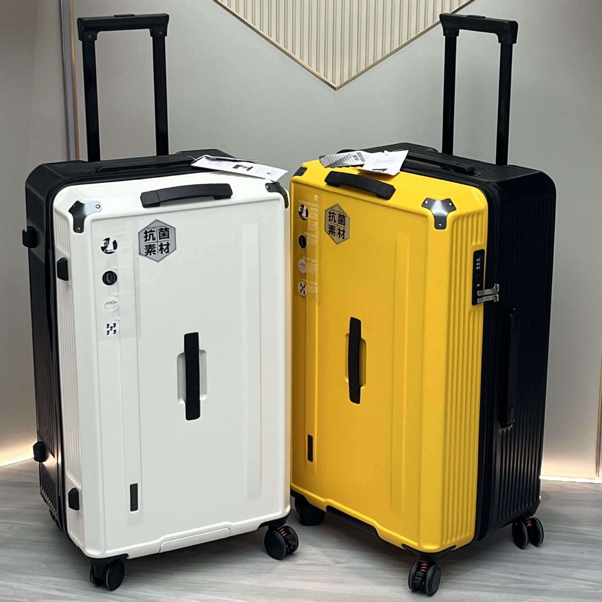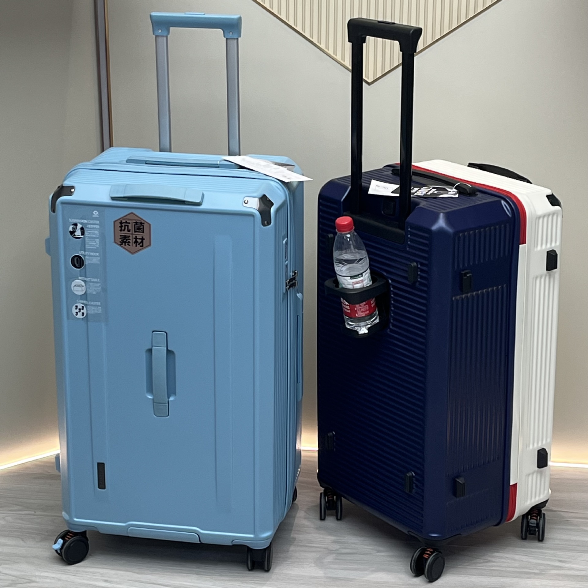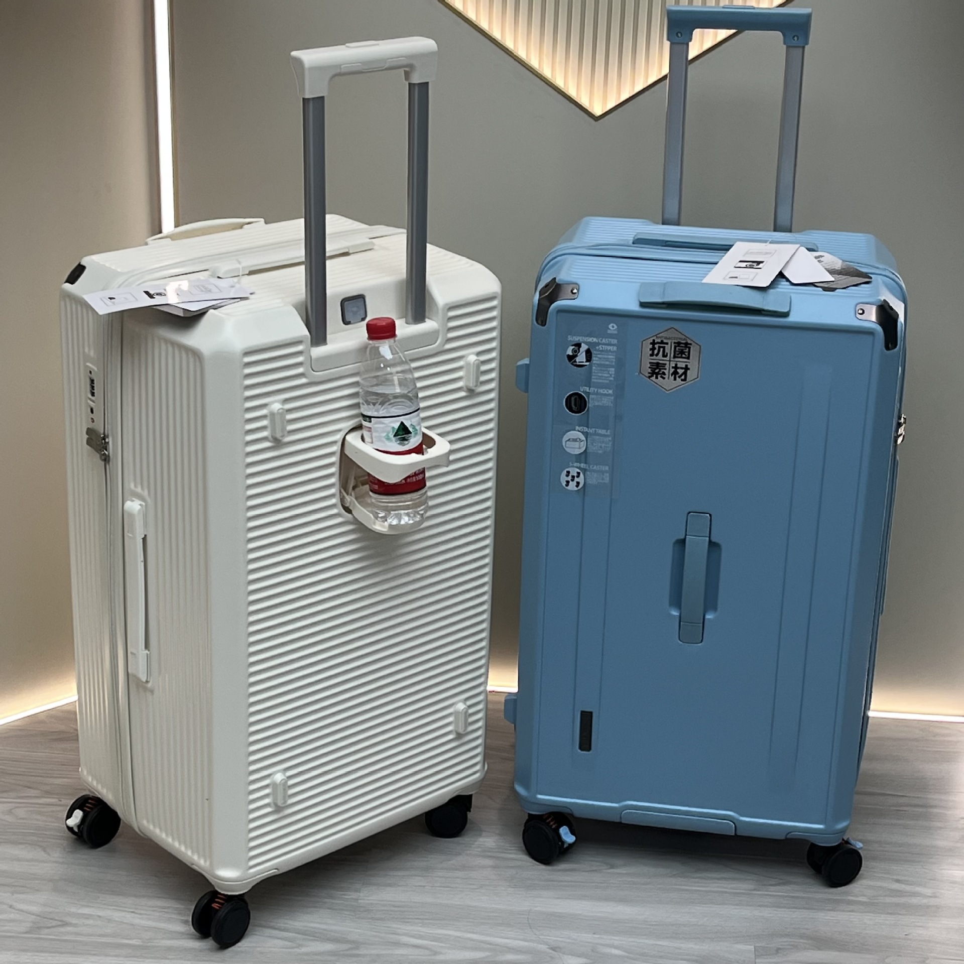Foreign trade multi-functional striped cup holder USB charging password luggage large capacity thickened zipper trolley case 28-inch
