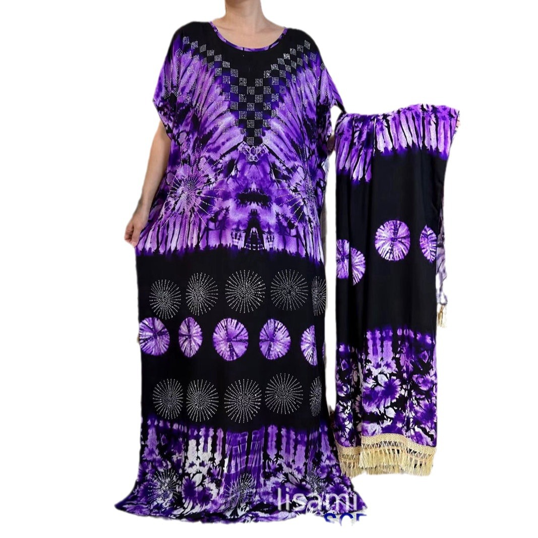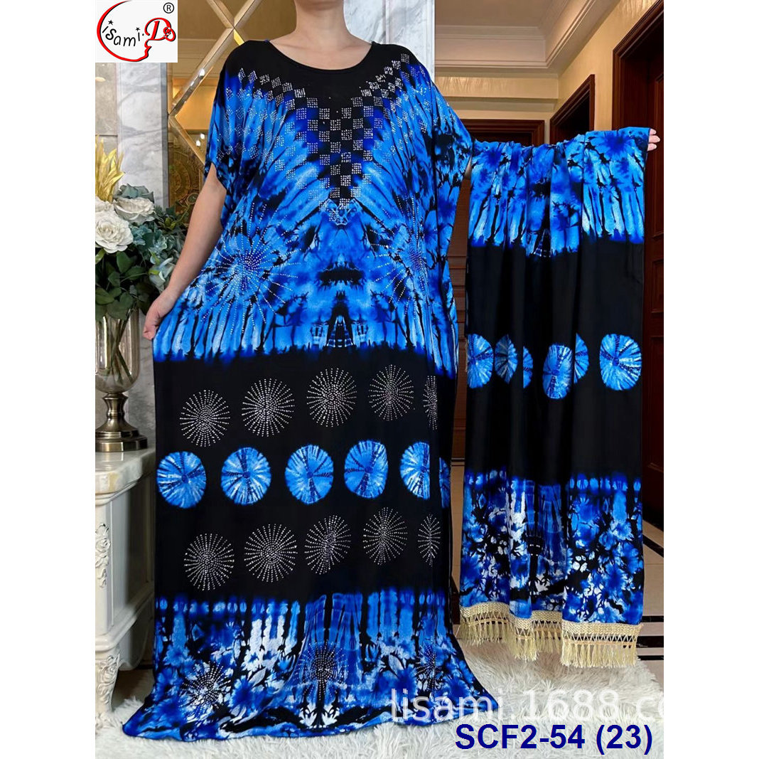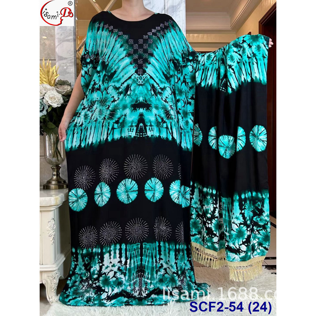 | nameOriginal | Foreign trade new African cotton printed plus size wide clothes with scarf suit abaya Robe Dress |