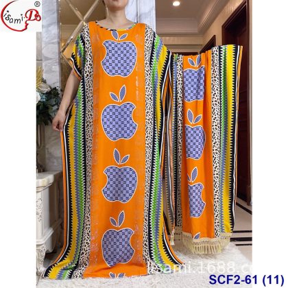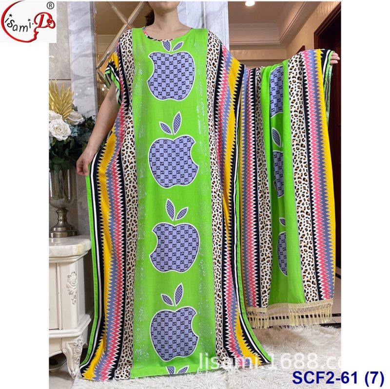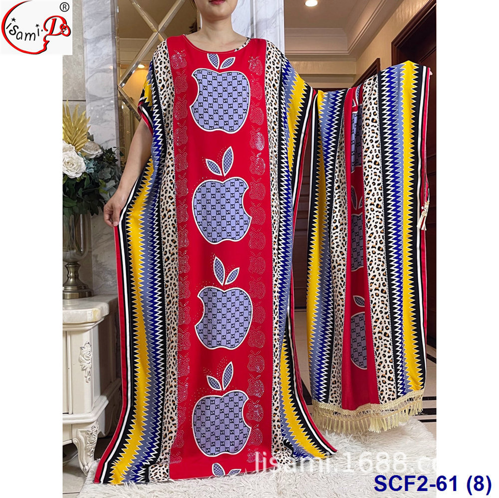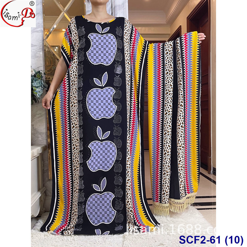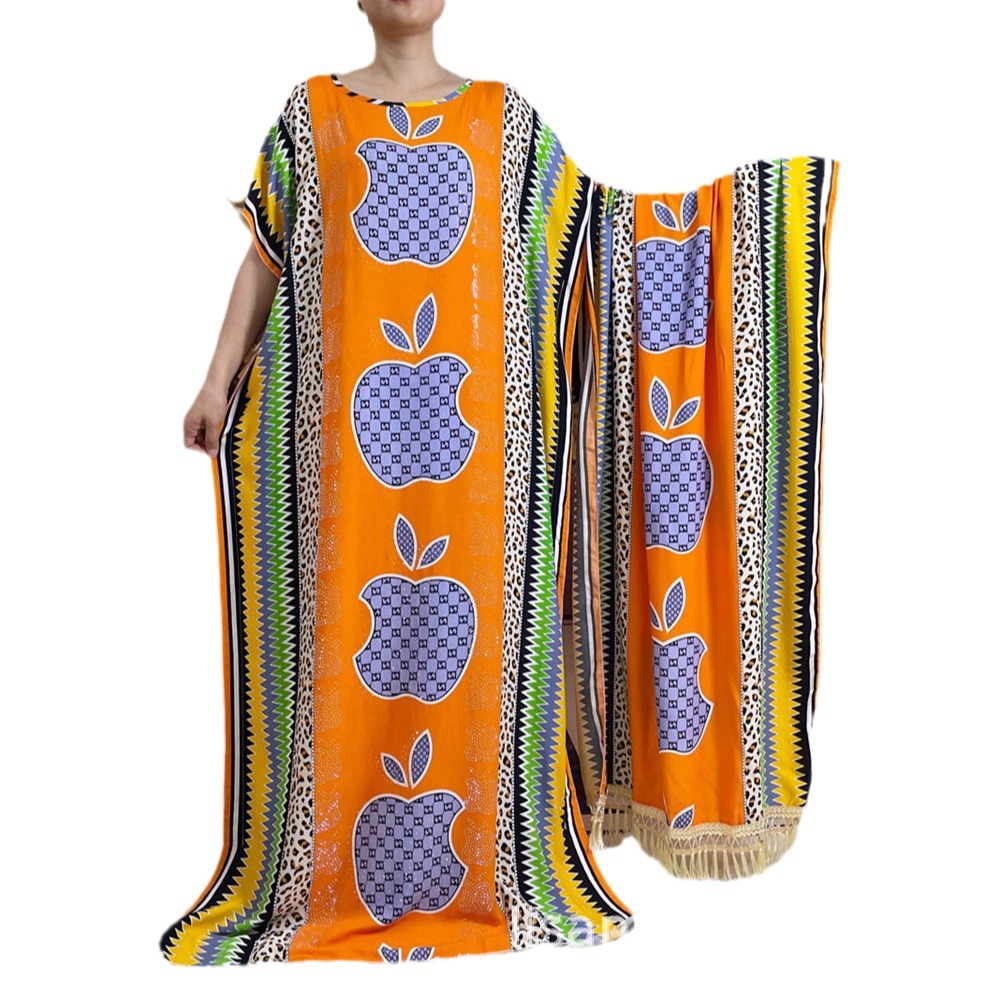 Foreign trade new African cotton printed plus size wide clothes with scarf suit abaya Robe Dress