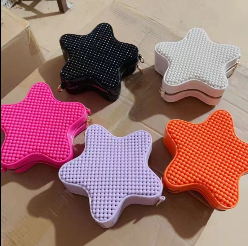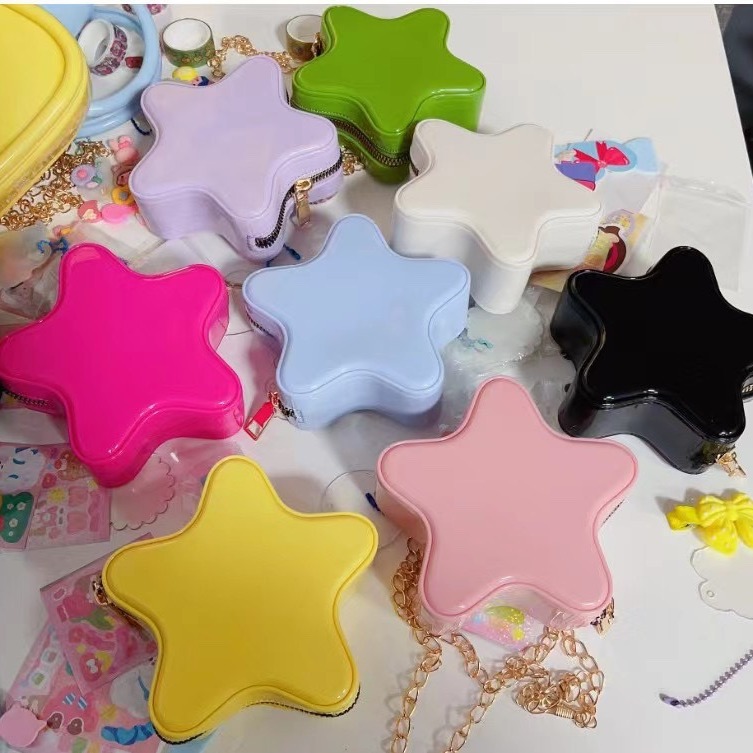 Foreign trade new Chanel style rhombus five-pointed star jelly bag shoulder messenger bag cute lipstick bag mini star bag