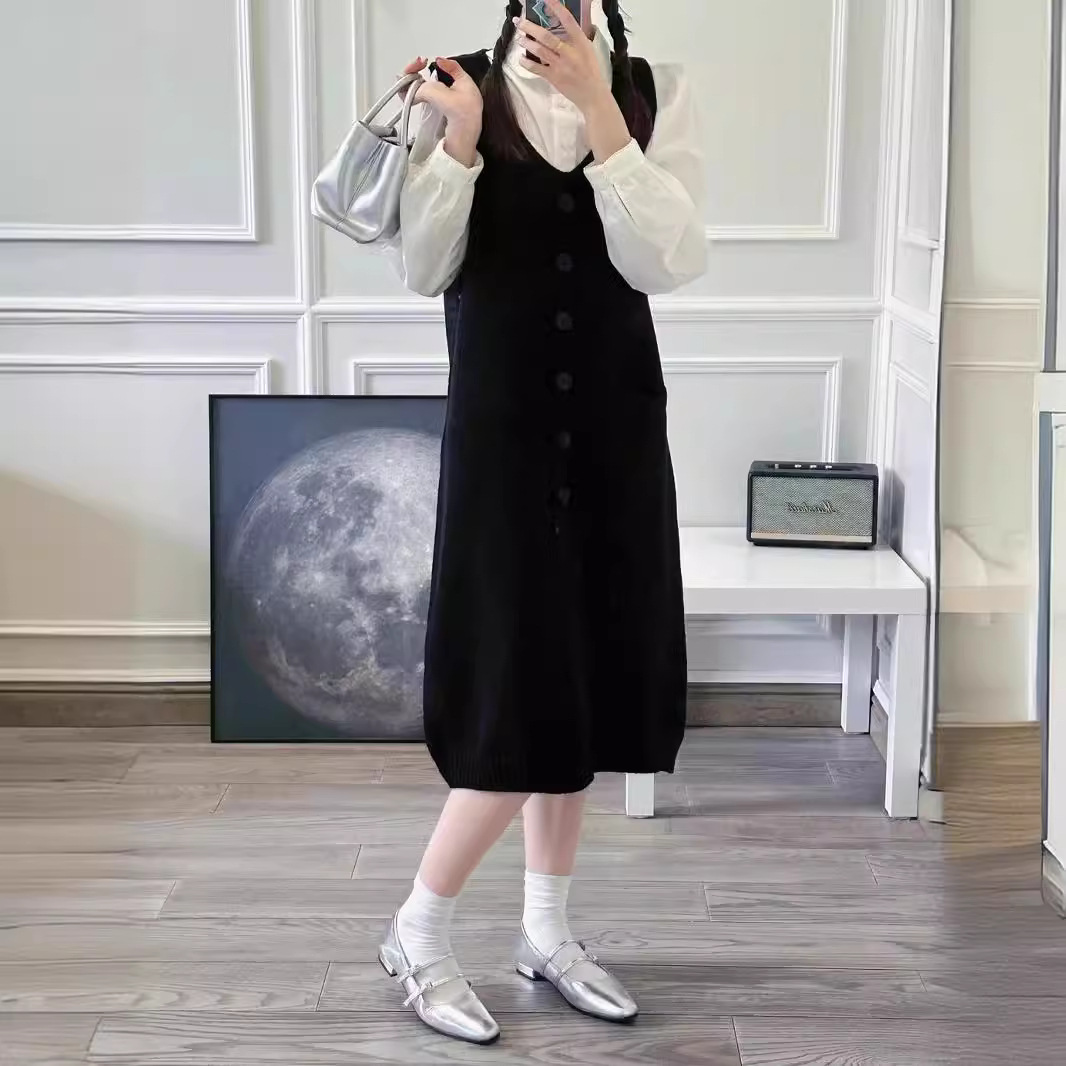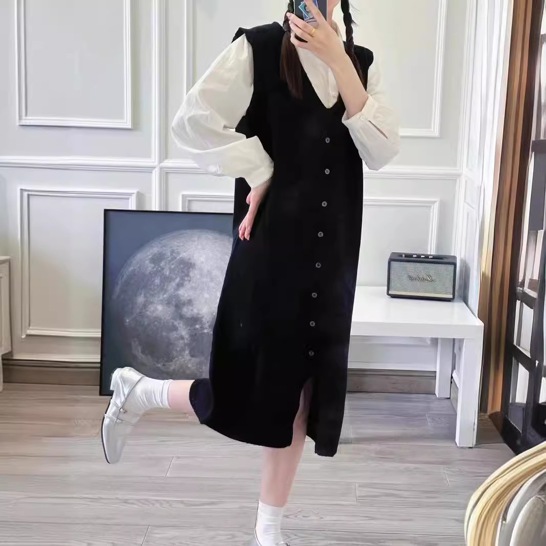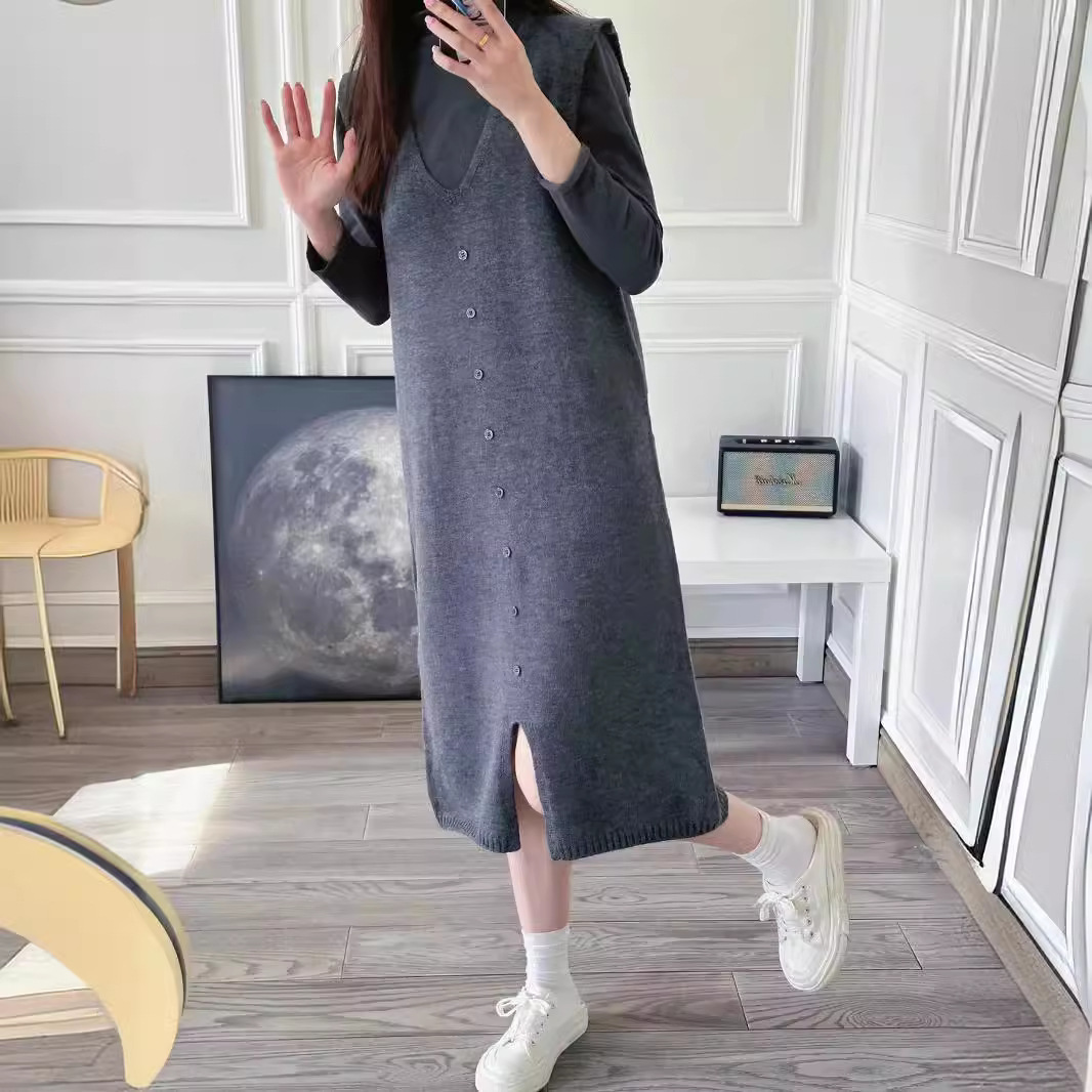 | nameOriginal | Foreign trade original order Mid-length V-neck Stacked-up Knitted Vaistle Dress Women's New Simple Loose Knitted Vall Dress |
