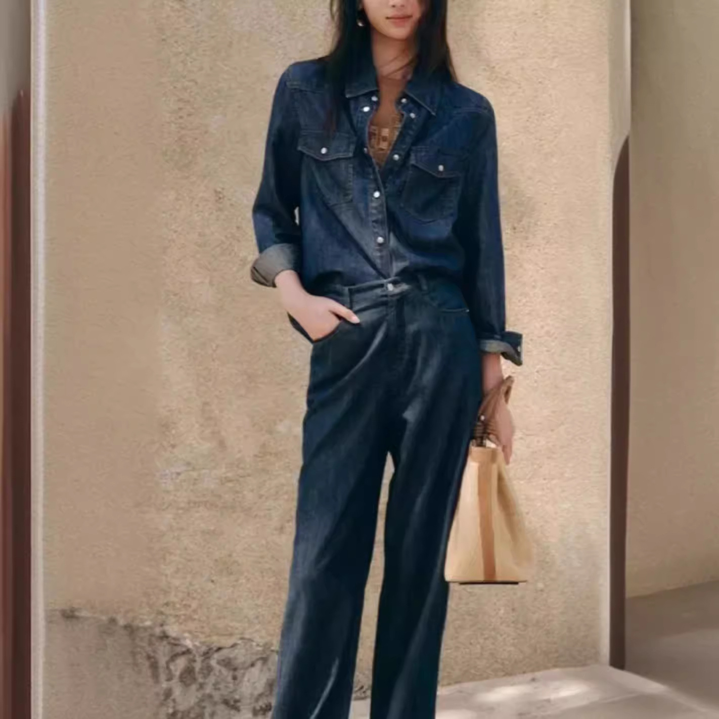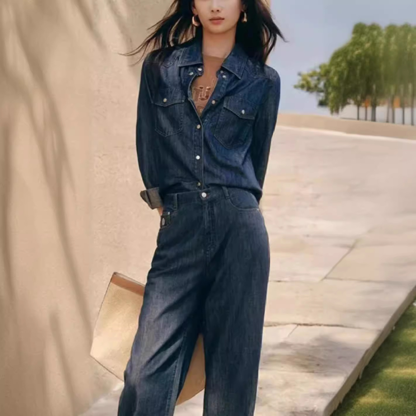 | nameOriginal | Foreign trade original order Spring and Summer New EP Ya Y Women's American Style Retro Long Sleeve Denim Shirt Jacket with Gold Silk |