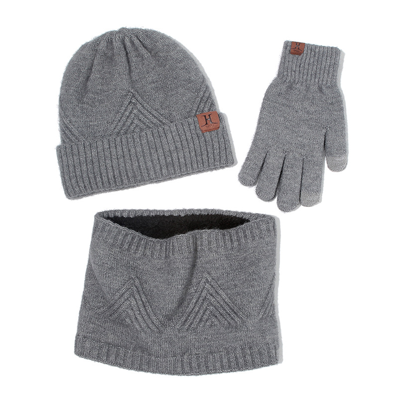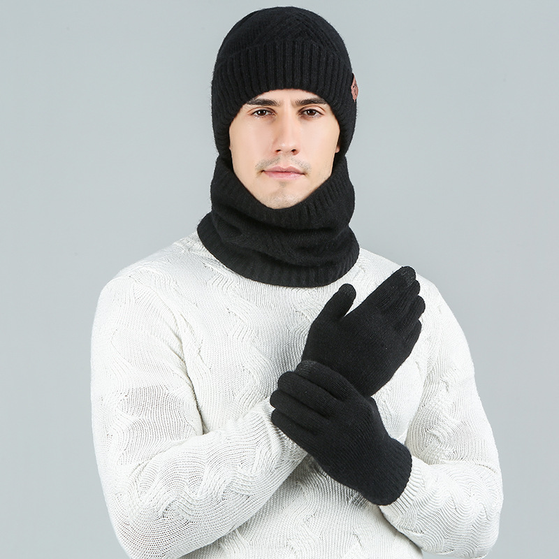 | nameOriginal | Foreign trade popular couple knitted scarf hat gloves three-piece twist wool hat scarf warm suit |